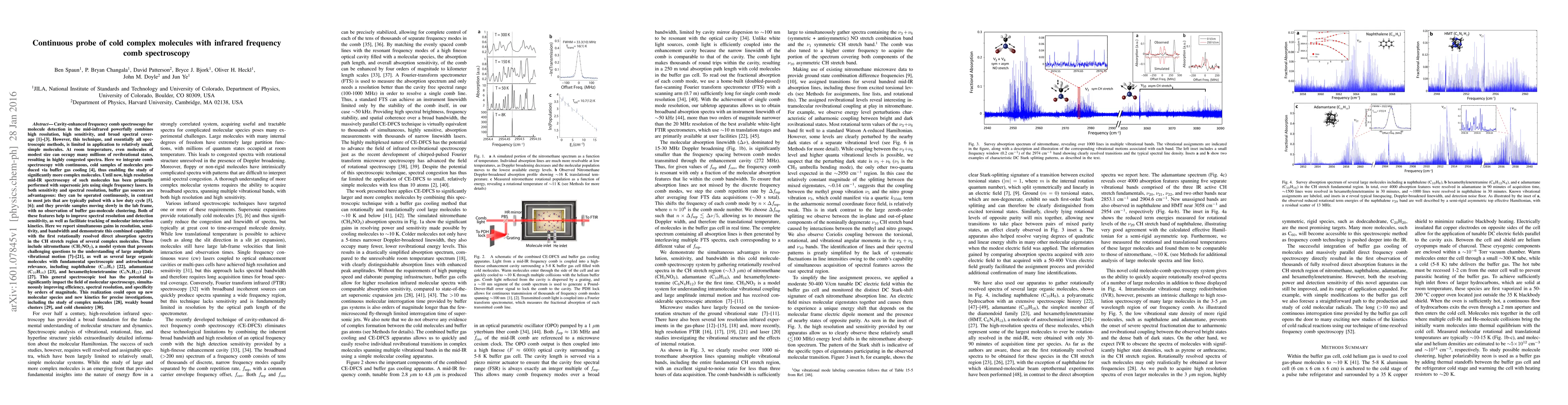 This paper presents a novel integration of cavity-enhanced frequency comb spectroscopy with cold, buffer gas-cooled molecular samples, enabling high-resolution, sensitive, and broad-spectrum detection of complex molecules. The method demonstrates significant improvements in resolution, sensitivity, and bandwidth, exemplified by the first rotationally resolved spectra of complex molecules like nitromethane, naphthalene, adamantane, and hexamethylenetetramine, potentially revolutionizing molecular spectroscopy and astrochemistry.