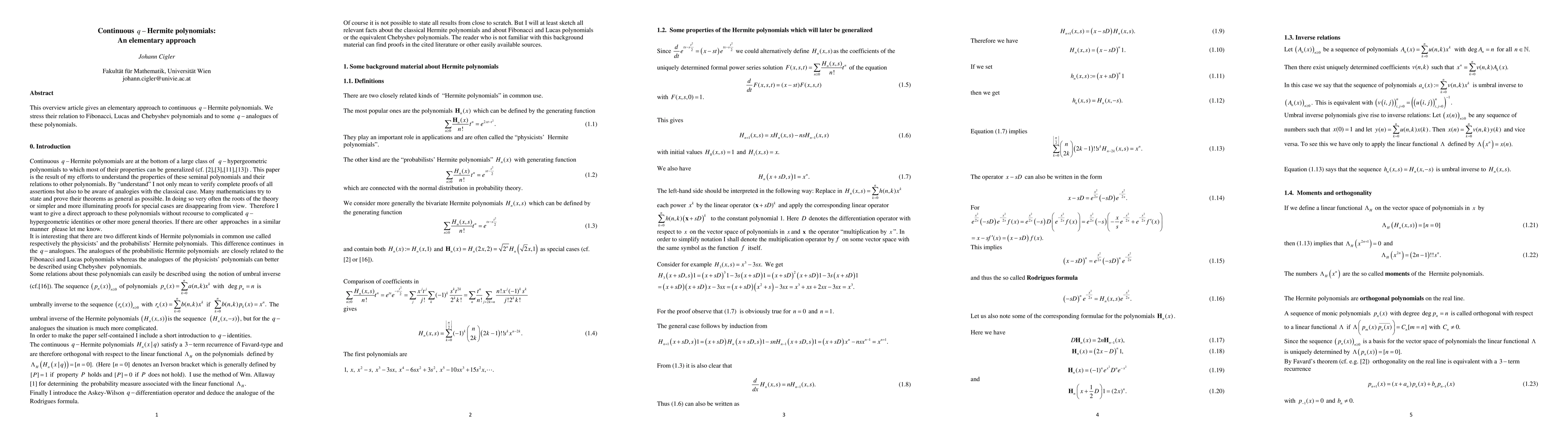 Summary: This paper provides an accessible introduction to continuous q-Hermite polynomials, emphasizing their connections to Fibonacci, Lucas, and Chebyshev polynomials, as well as their q-analogues. The focus is on elucidating these relationships in an elementary manner.