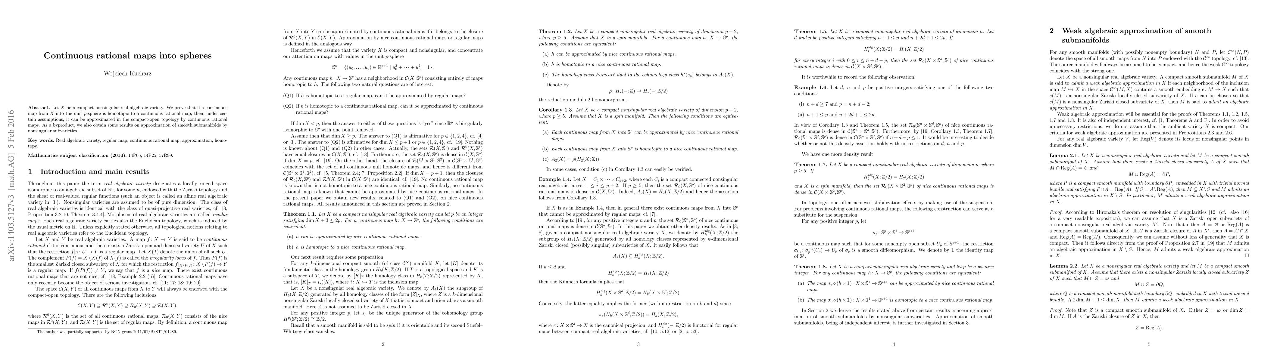 This paper proves that continuous maps from a compact nonsingular real algebraic variety into a unit p-sphere can be approximated by continuous rational maps under certain conditions. Additionally, it yields results on approximating smooth submanifolds with nonsingular subvarieties.