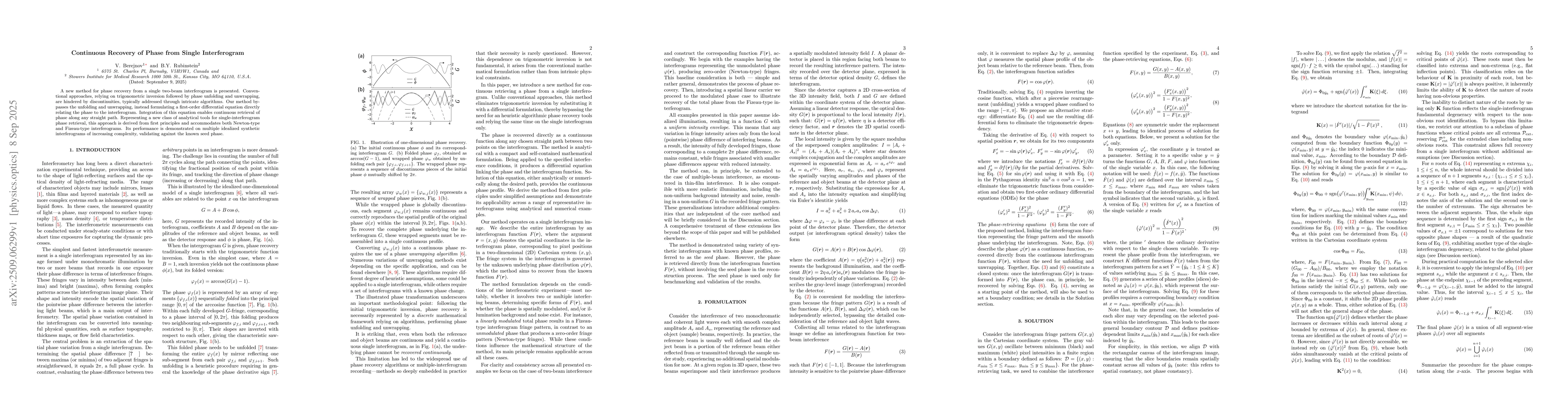 A new method for phase recovery from a single two-beam interferogram is presented. Conventional approaches, relying on trigonometric inversion followed by phase unfolding and unwrapping, are hindered by discontinuities, typically addressed through intricate algorithms. Our method bypasses the unfolding and unwrapping, instead formulating a first-order differential equation directly relating the phase to the interferogram. Integration of this equation enables continuous retrieval of phase along any straight path. Representing a new class of analytical tools for single-interferogram phase retrieval, this approach is derived from first principles and accommodates both Newton-type and Fizeau-type interferograms. Its performance is demonstrated on multiple idealized synthetic interferograms of increasing complexity, validating against the known seed phase.