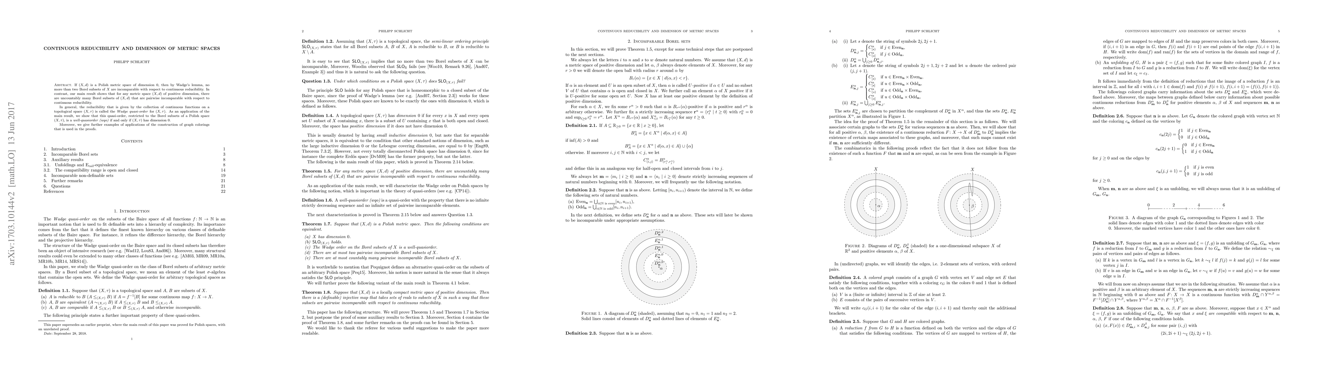 A Polish metric space of dimension 0 has at most two incomparable Borel subsets under continuous reducibility, but any metric space of positive dimension has uncountably many. This distinction is key to understanding the relationship between a space's dimension and its Wadge quasi-order.