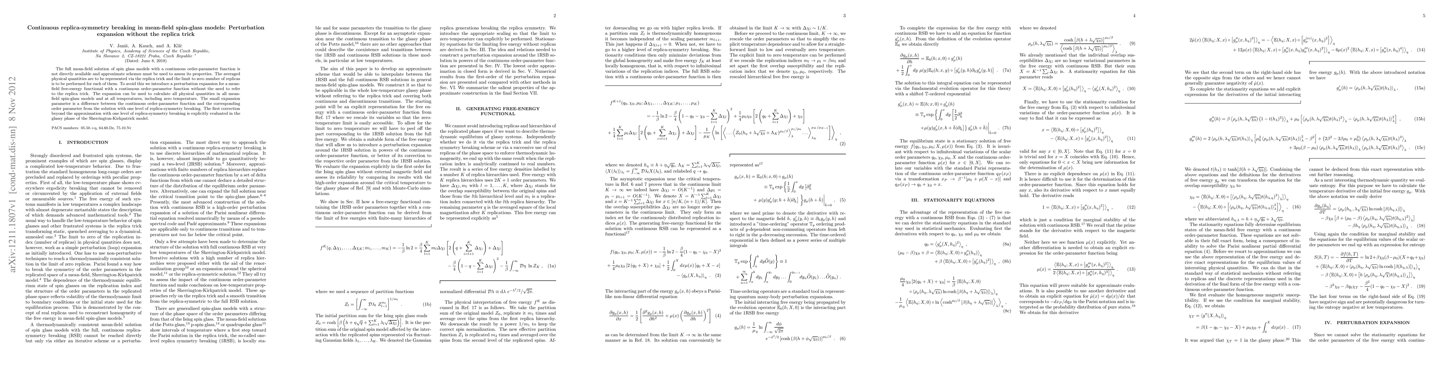 The full mean-field solution of spin glass models with a continuous order-parameter function is not directly available and approximate schemes must be used to assess its properties. The averaged physical quantities are to be represented via the replica trick and the limit to zero number of replicas is to be performed for each of them. To avoid this we introduce a perturbation expansion for a mean-field free-energy functional with a continuous order-parameter function without the need to refer to the replica trick. The expansion can be used to calculate all physical quantities in all mean-field spin-glass models and at all temperatures, including zero temperature. The small expansion parameter is a difference between the continuous order-parameter function and the corresponding order parameter from the solution with one level of replica-symmetry breaking. The first correction beyond the approximation with one level of replica-symmetry breaking is explicitly evaluated in the glassy phase of the Sherrington-Kirkpatrick model.