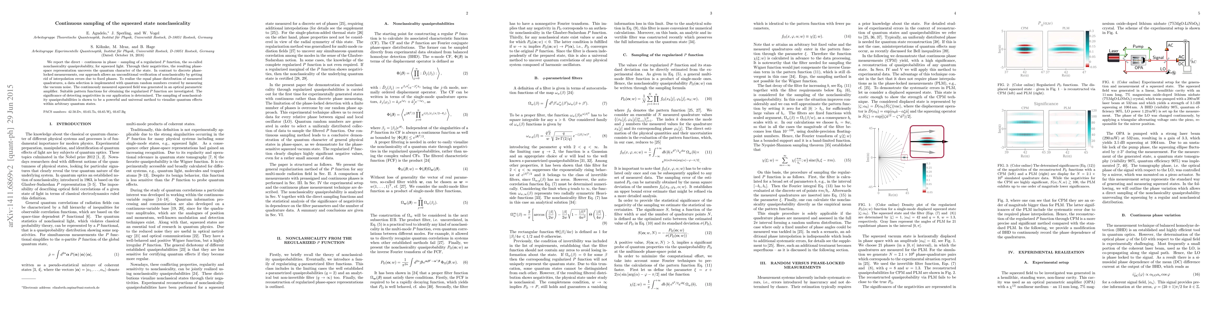 This paper presents a method for continuous sampling of the nonclassicality quasiprobability of squeezed light, revealing its quantum character through phase-space representation. Unlike discrete measurements, this approach verifies nonclassicality without interpolation errors, utilizing quantum random numbers for data selection.
