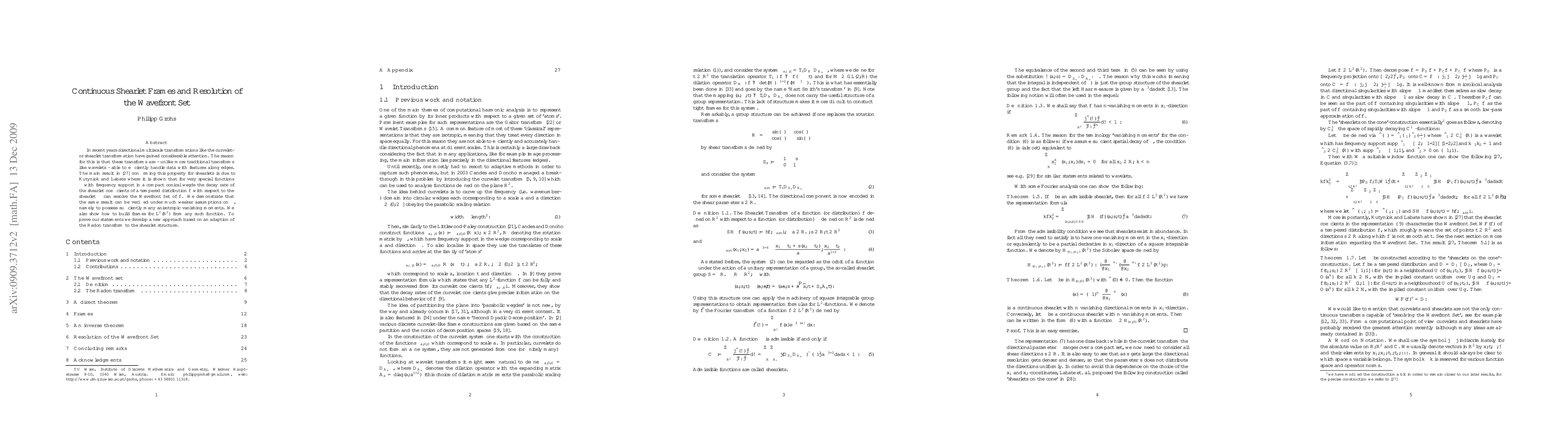 In recent years directional multiscale transformations like the curvelet- or shearlet transformation have gained considerable attention. The reason for this is that these transforms are - unlike more traditional transforms like wavelets - able to efficiently handle data with features along edges. The main result in [G. Kutyniok, D. Labate. Resolution of the Wavefront Set using continuous Shearlets, Trans. AMS 361 (2009), 2719-2754] confirming this property for shearlets is due to Kutyniok and Labate where it is shown that for very special functions $\psi$ with frequency support in a compact conical wegde the decay rate of the shearlet coefficients of a tempered distribution $f$ with respect to the shearlet $\psi$ can resolve the Wavefront Set of $f$. We demonstrate that the same result can be verified under much weaker assumptions on $\psi$, namely to possess sufficiently many anisotropic vanishing moments. We also show how to build frames for $L^2(\mathbb{R}^2)$ from any such function. To prove our statements we develop a new approach based on an adaption of the Radon transform to the shearlet structure.