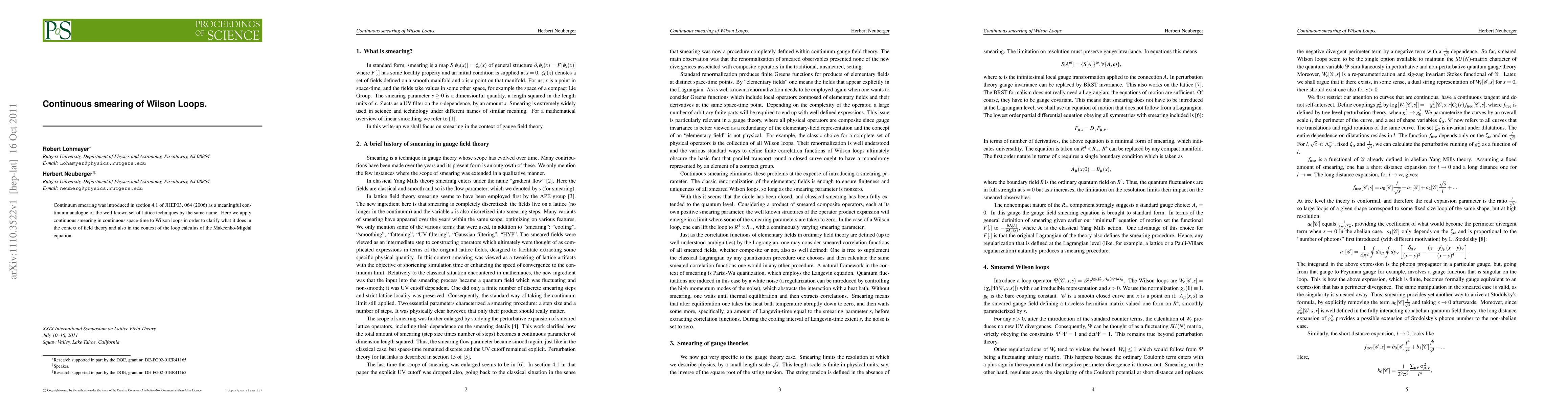 Continuum smearing was introduced in section 4.1 of JHEP03, 064 (2006) as a meaningful continuum analogue of the well known set of lattice techniques by the same name. Here we apply continuous smearing in continuous space-time to Wilson loops in order to clarify what it does in the context of field theory and also in the context of the loop calculus of the Makeenko-Migdal equation.