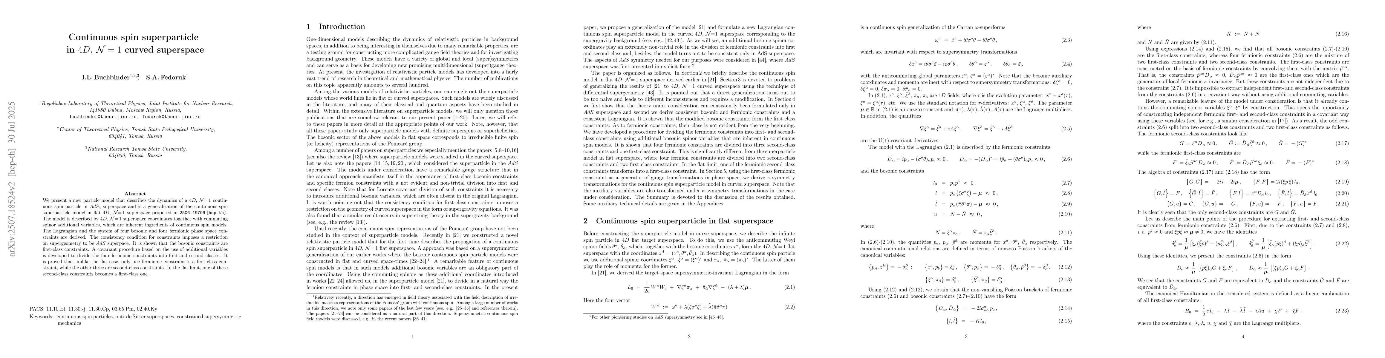 We present a new particle model that describes the dynamics of a $4D,$ $\mathcal{N}{=}\,1$ continuous spin particle in $AdS_4$ superspace and is a generalization of the continuous-spin superparticle model in flat $4D$, $\mathcal{N}{=}\,1$ superspace proposed in 2506.19709 [hep-th]. The model is described by $4D$, $\mathcal{N}{=}\,1$ superspace coordinates together with commuting spinor additional variables, which are inherent ingredients of continuous spin models. The Lagrangian and the system of four bosonic and four fermionic phase space constraints are derived. The consistency condition for constraints imposes a restriction on supergeometry to be $AdS$ superpace. It is shown that the bosonic constraints are first-class constraints. A covariant procedure based on the use of additional variables is developed to divide the four fermionic constraints into first and second classes. It is proved that, unlike the flat case, only one fermionic constraint is a first-class constraint, while the other three are second-class constraints. In the flat limit, one of these second-class constraints becomes a first-class one.