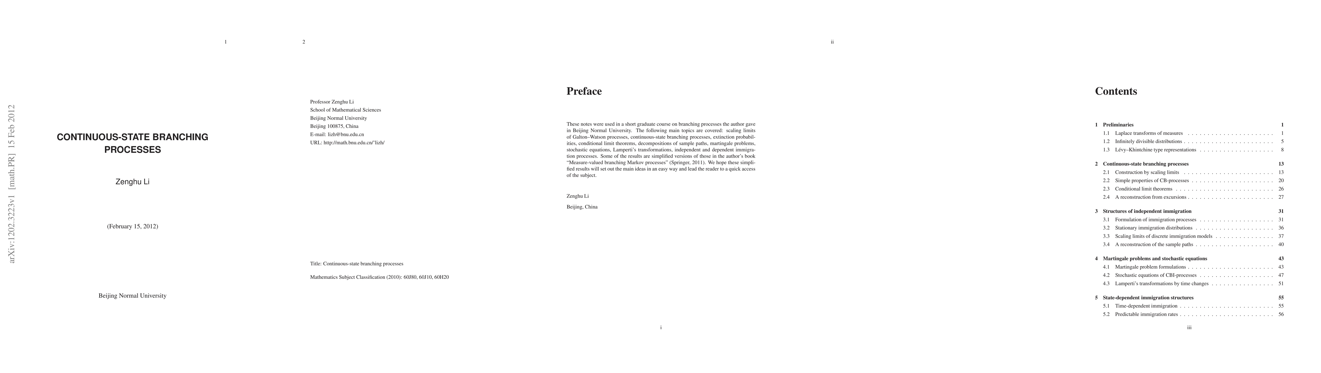These notes were used in a short graduate course on branching processes the author gave in Beijing Normal University. The following main topics are covered: scaling limits of Galton--Watson processes, continuous-state branching processes, extinction probabilities, conditional limit theorems, decompositions of sample paths, martingale problems, stochastic equations, Lamperti's transformations, independent and dependent immigration processes. Some of the results are simplified versions of those in the author's book "Measure-valued branching Markov processes" (Springer, 2011). We hope these simplified results will set out the main ideas in an easy way and lead the reader to a quick access of the subject.