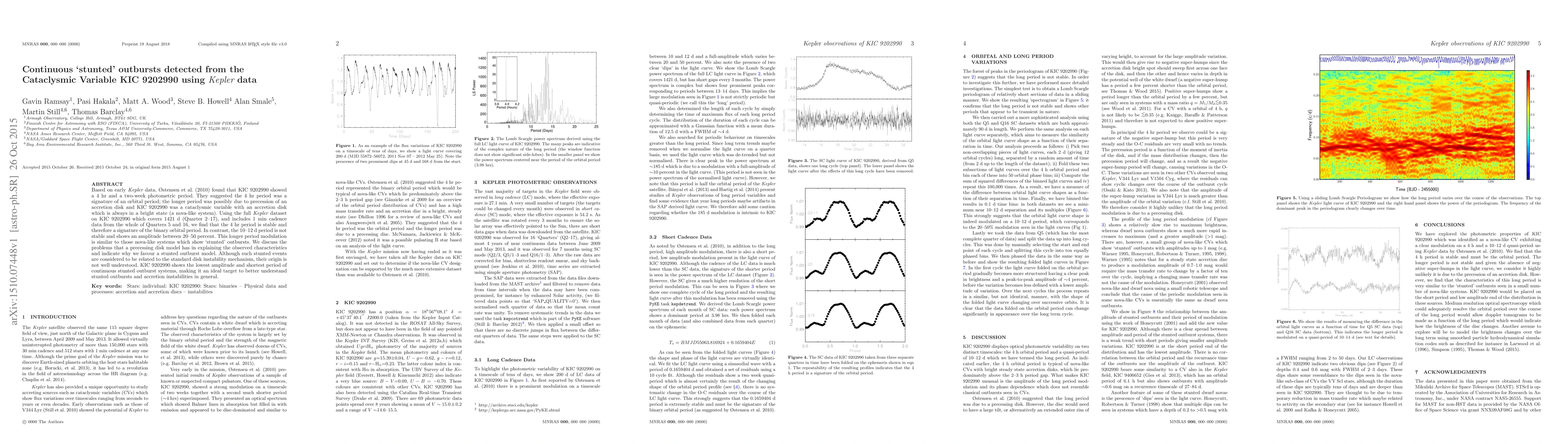 This study analyzes KIC 9202990 using full Kepler dataset, confirming a stable 4-hour orbital period but finding that the previously suggested 10-12 day period is unstable, resembling "stunted" outbursts in nova-like systems. The authors argue against a precessing disk model and favor a stunted outburst model to explain the observed variability.
