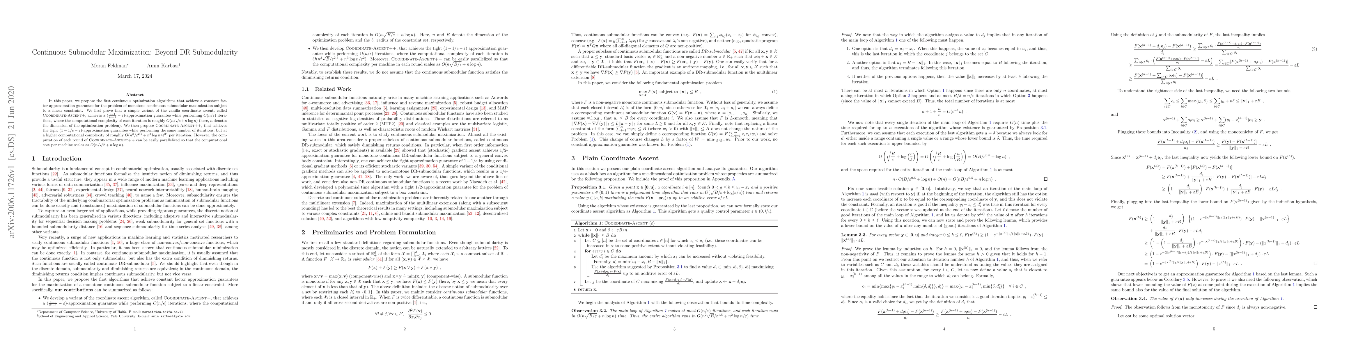 In this paper, we propose the first continuous optimization algorithms that achieve a constant factor approximation guarantee for the problem of monotone continuous submodular maximization subject to a linear constraint. We first prove that a simple variant of the vanilla coordinate ascent, called Coordinate-Ascent+, achieves a $(\frac{e-1}{2e-1}-\varepsilon)$-approximation guarantee while performing $O(n/\varepsilon)$ iterations, where the computational complexity of each iteration is roughly $O(n/\sqrt{\varepsilon}+n\log n)$ (here, $n$ denotes the dimension of the optimization problem). We then propose Coordinate-Ascent++, that achieves the tight $(1-1/e-\varepsilon)$-approximation guarantee while performing the same number of iterations, but at a higher computational complexity of roughly $O(n^3/\varepsilon^{2.5} + n^3 \log n / \varepsilon^2)$ per iteration. However, the computation of each round of Coordinate-Ascent++ can be easily parallelized so that the computational cost per machine scales as $O(n/\sqrt{\varepsilon}+n\log n)$.