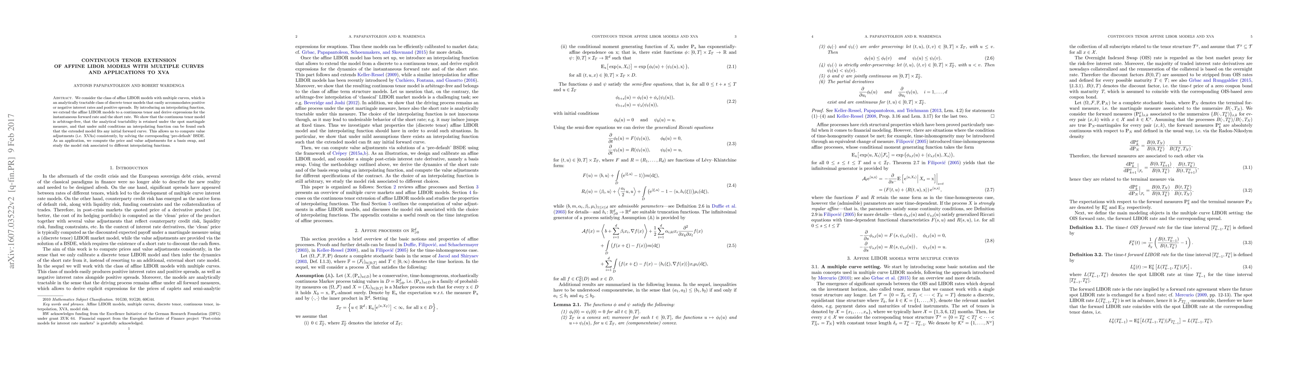 This paper extends affine LIBOR models with multiple curves to continuous tenor, ensuring arbitrage-freeness and analytical tractability. It applies the continuous tenor model to compute XVA adjustments, demonstrating its utility through the pricing of a basis swap and analysis of model risk.