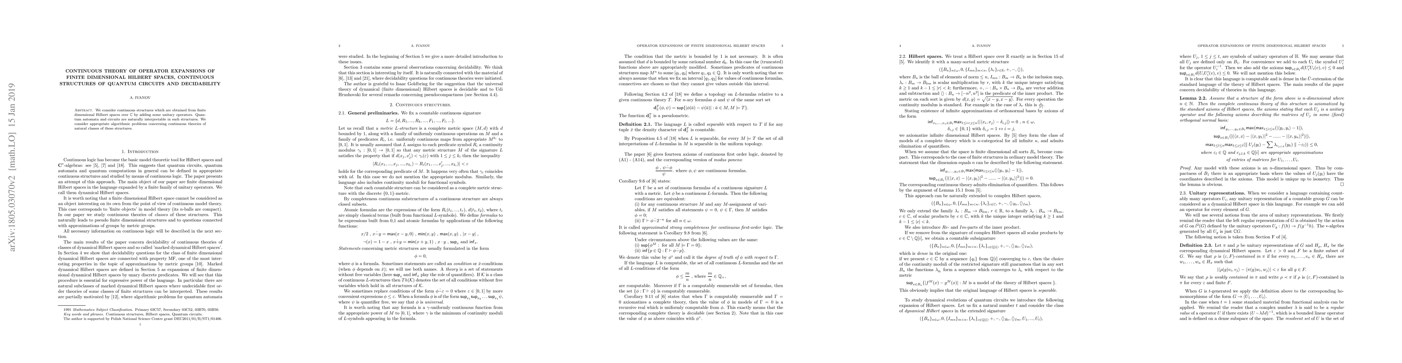 We consider continuous structures which are obtained from finite dimensional Hilbert spaces over $\mathbb{C}$ by adding some unitary operators. Quantum automata and circuits are naturally interpretable in such structures. We consider appropriate algorithmic problems concerning continuous theories of natural classes of these structures. We connect them with the topic of approximations by metric groups. This paper extends and corrects the paper A. Ivanov, "Continuous structures of quantum circuits", arXiv: 1406.4635. Replacing version contains a new section (Section 4.4).