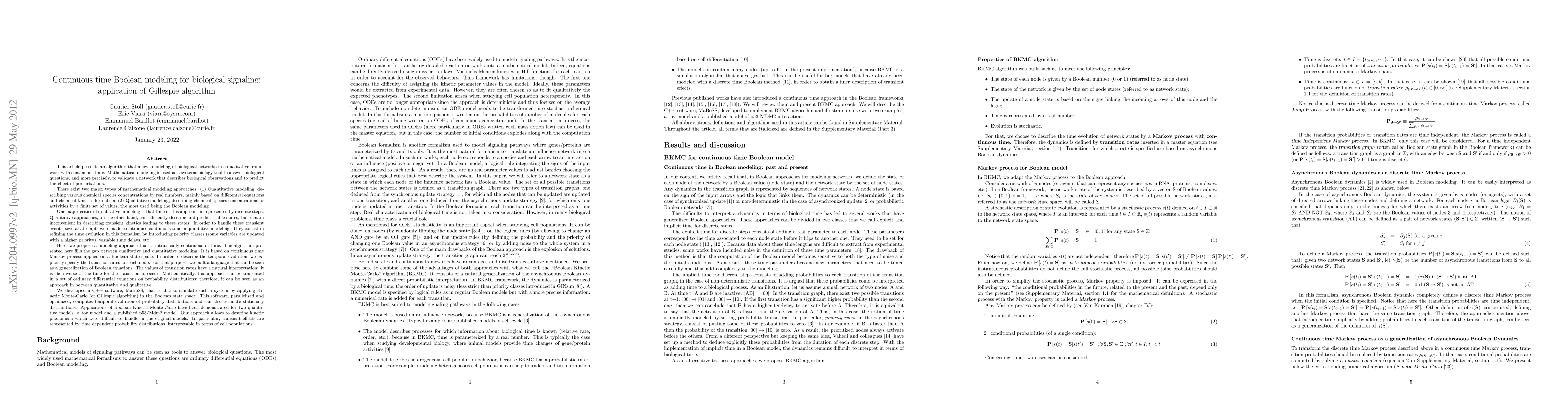 This paper introduces a continuous-time Boolean modeling algorithm for biological networks, bridging qualitative and quantitative modeling. The proposed method, implemented in the MaBoSS software, uses the Gillespie algorithm to simulate the temporal evolution of probability distributions, demonstrating its application in a toy model and a p53/Mdm2 network.