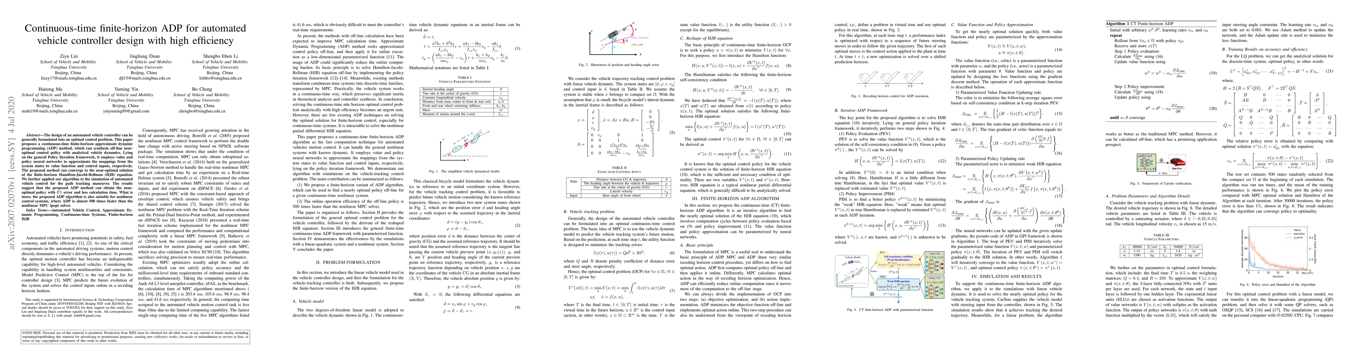 The paper introduces a continuous-time finite-horizon ADP algorithm that efficiently synthesizes near-optimal control policies for automated vehicles using neural networks.