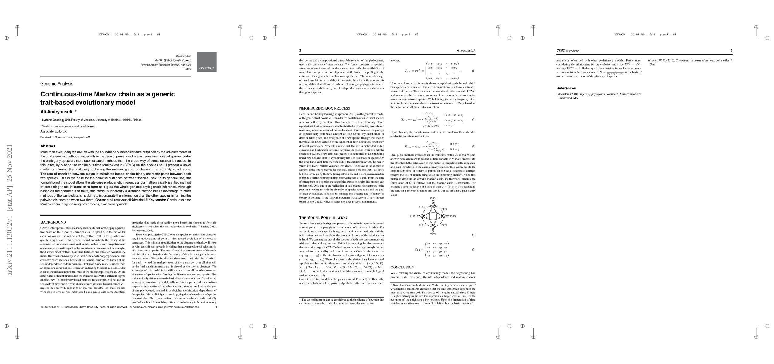 A new model using continuous-time Markov chains infers phylogeny by analyzing binary character paths between species, providing a more accurate method for comparing species distances.
