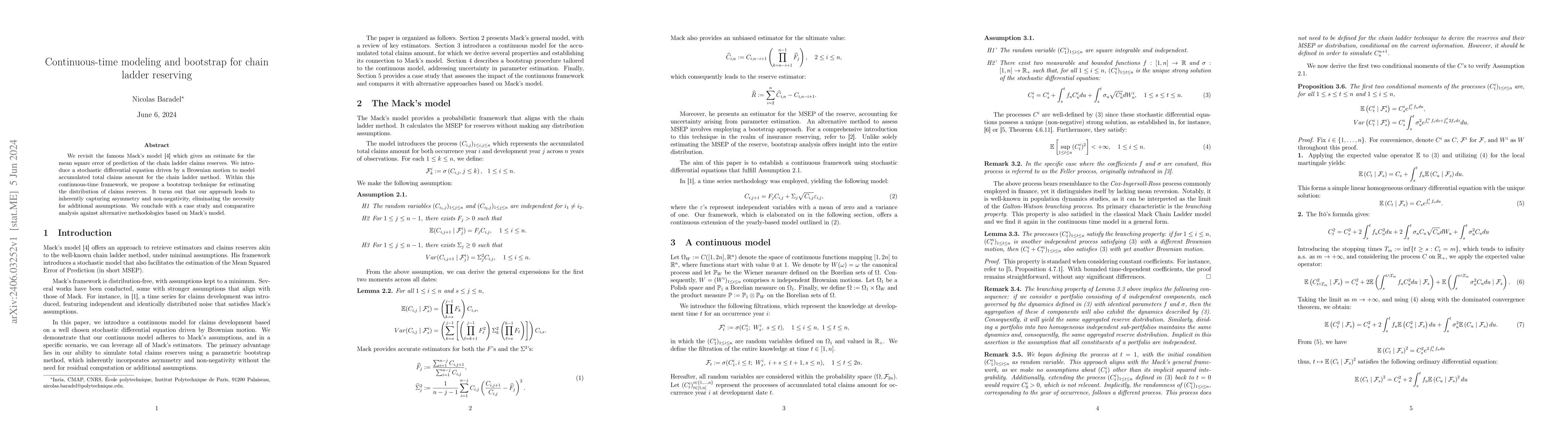 This paper models accumulated total claims using a continuous-time stochastic differential equation and proposes a bootstrap technique to estimate claims reserves, capturing asymmetry and non-negativity without additional assumptions. It concludes with a case study comparing its results to traditional Mack's model-based methods.