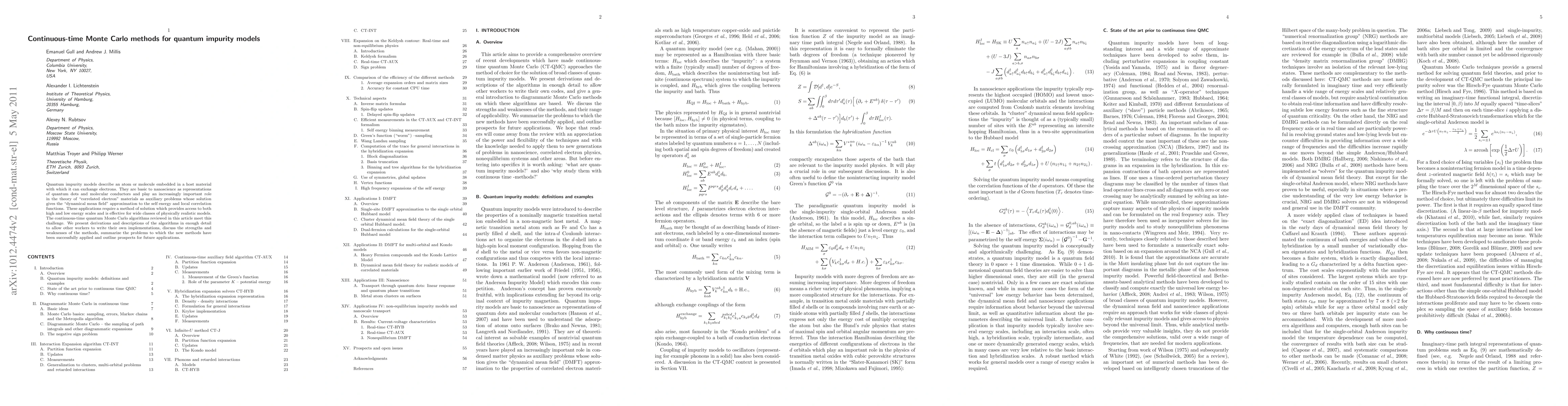 This paper reviews continuous-time Monte Carlo methods for solving quantum impurity models, which are essential for understanding quantum dots and correlated electron materials. The authors provide detailed derivations and descriptions of the algorithms, discuss their strengths and weaknesses, and outline successful applications and future prospects.