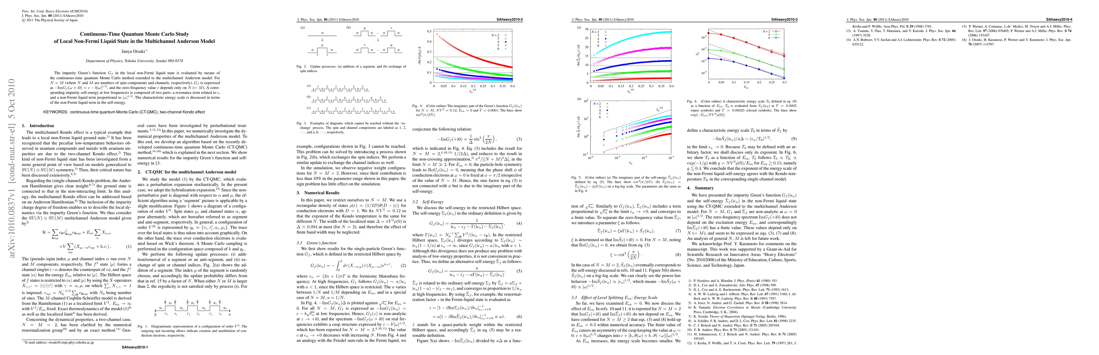 This paper employs continuous-time quantum Monte Carlo to study the impurity Green's function in a multichannel Anderson model, revealing a local non-Fermi liquid state. The zero-frequency value of the Green's function depends solely on the number of spin components and channels, and the self-energy includes a resonance term and a non-Fermi liquid term proportional to |w|^{1/2}, highlighting a characteristic energy scale.
