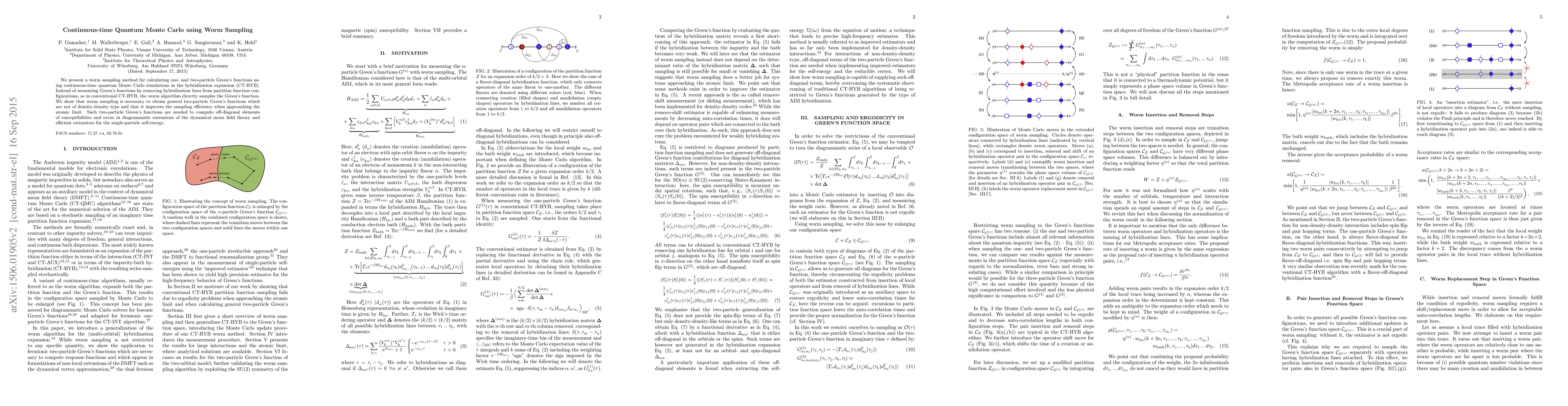 This paper introduces a worm sampling method for continuous-time quantum Monte Carlo simulations, enhancing the calculation of one- and two-particle Green's functions in the hybridization expansion. Unlike traditional methods, worm sampling directly samples Green's functions, improving efficiency and enabling the computation of non-density-density two-particle Green's functions crucial for advanced susceptibilities and self-energy estimations.
