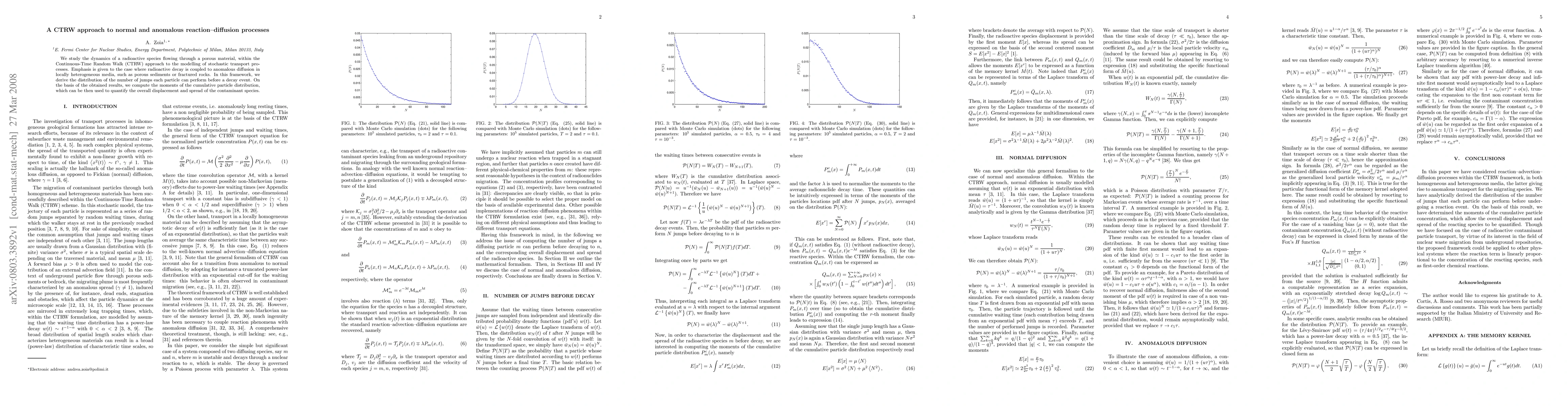 This paper employs the Continuous-Time Random Walk (CTRW) approach to model the stochastic transport of a radioactive species through porous materials, focusing on the interplay between radioactive decay and anomalous diffusion. It derives the distribution of particle jumps before decay and computes the moments of the cumulative particle distribution to quantify the contaminant's spread.