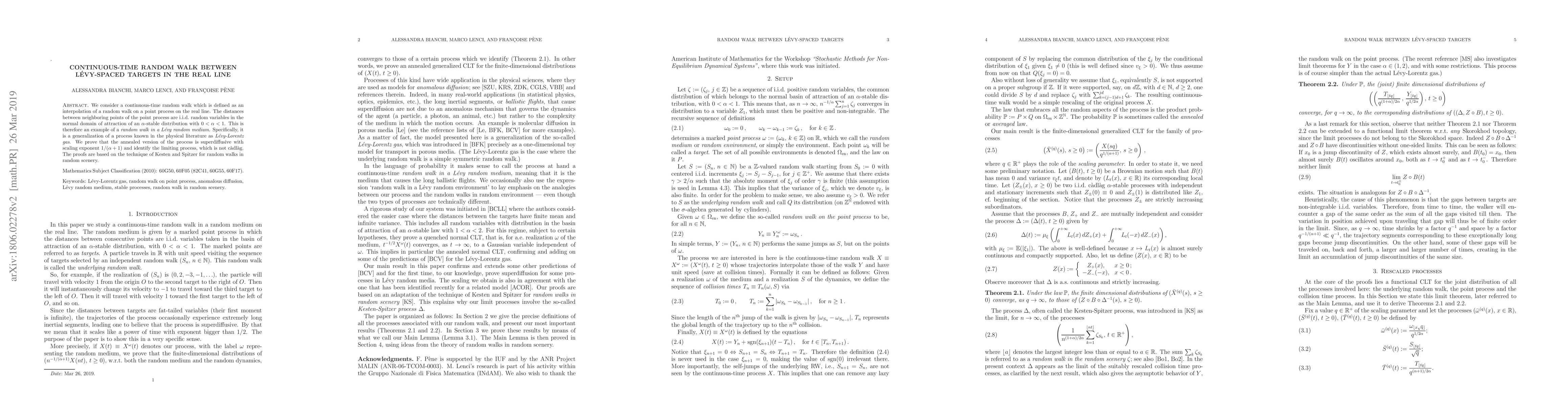 Summary: This paper studies a continuous-time random walk on the real line where the distances between points are governed by an $\alpha$-stable distribution ($0 < \alpha < 1$). The process is shown to be superdiffusive with a scaling exponent of $1/(\alpha + 1)$, and the limiting process is identified as non-c\`adl\`ag, employing techniques from random walks in random scenery.