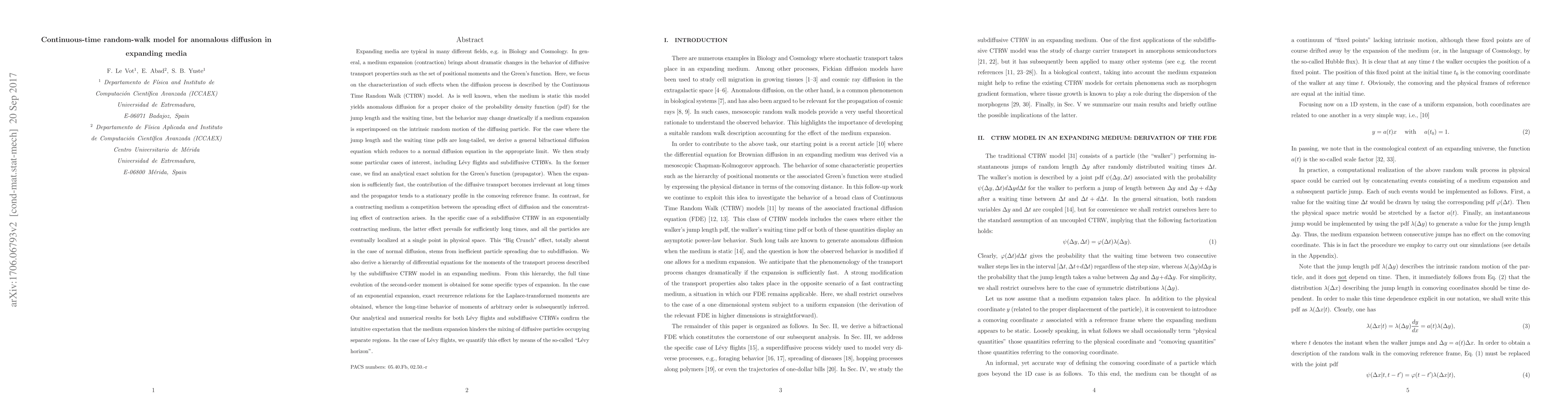 Expanding media are typical in many different fields, e.g. in Biology and Cosmology. In general, a medium expansion (contraction) brings about dramatic changes in the behavior of diffusive transport properties. Here, we focus on such effects when the diffusion process is described by the Continuous Time Random Walk (CTRW) model. For the case where the jump length and the waiting time probability density functions (pdfs) are long-tailed, we derive a general bifractional diffusion equation which reduces to a normal diffusion equation in the appropriate limit. We then study some particular cases of interest, including L\'evy flights and subdiffusive CTRWs. In the former case, we find an analytical exact solution for the Green's function (propagator). When the expansion is sufficiently fast, the contribution of the diffusive transport becomes irrelevant at long times and the propagator tends to a stationary profile in the comoving reference frame. In contrast, for a contracting medium a competition between the spreading effect of diffusion and the concentrating effect of contraction arises. For a subdiffusive CTRW in an exponentially contracting medium, the latter effect prevails for sufficiently long times, and all the particles are eventually localized at a single point in physical space. This "Big Crunch" effect stems from inefficient particle spreading due to subdiffusion. We also derive a hierarchy of differential equations for the moments of the transport process described by the subdiffusive CTRW model. In the case of an exponential expansion, exact recurrence relations for the Laplace-transformed moments are obtained. Our results confirm the intuitive expectation that the medium expansion hinders the mixing of diffusive particles occupying separate regions. In the case of L\'evy flights, we quantify this effect by means of the so-called "L\'evy horizon".