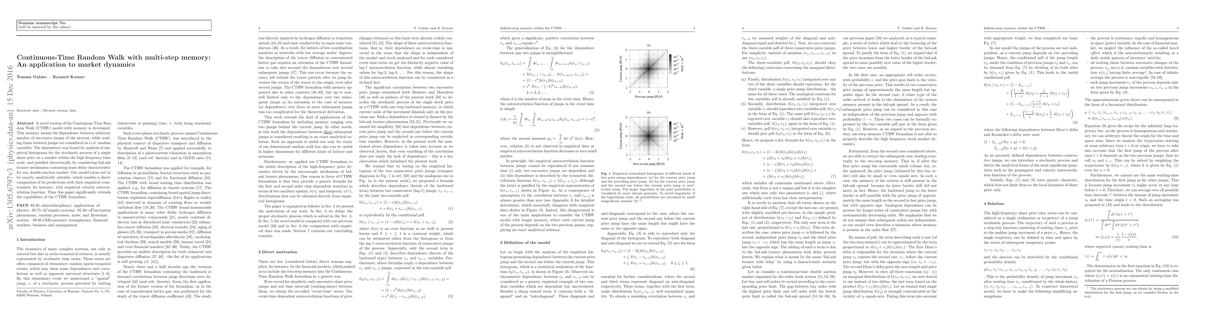 This paper introduces a novel Continuous-Time Random Walk (CTRW) model with multi-step memory, capturing dependencies between successive jumps in stock price movements. The model is analytically solvable and provides a direct comparison with empirical data, extending the CTRW formalism for market dynamics.