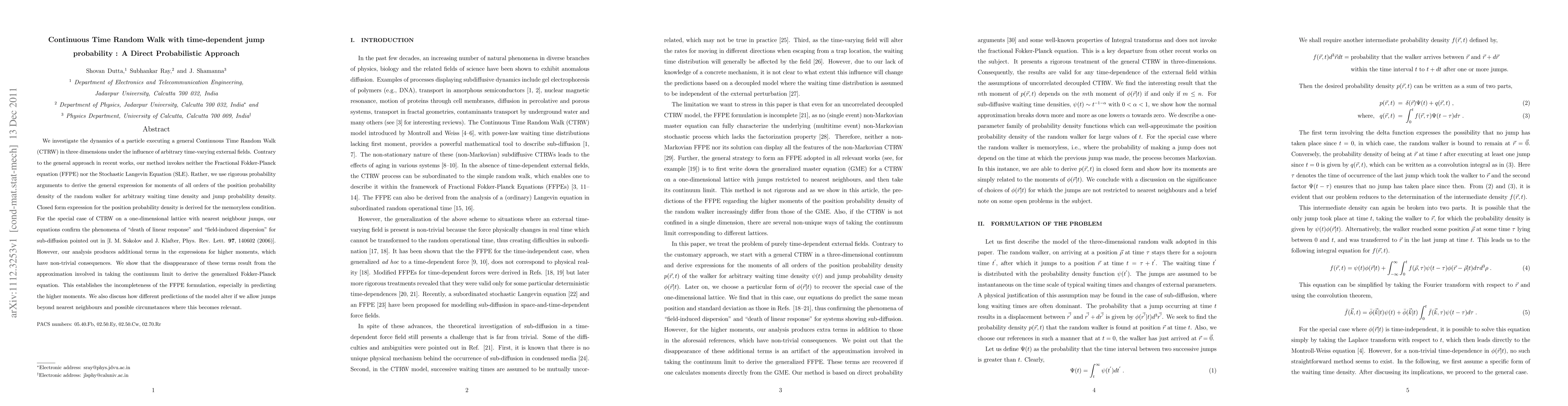 Researchers develop a new method to study Continuous Time Random Walks with time-dependent jump probabilities, revealing additional terms in higher moments that can alter predictions under certain conditions, highlighting the incompleteness of existing equations.