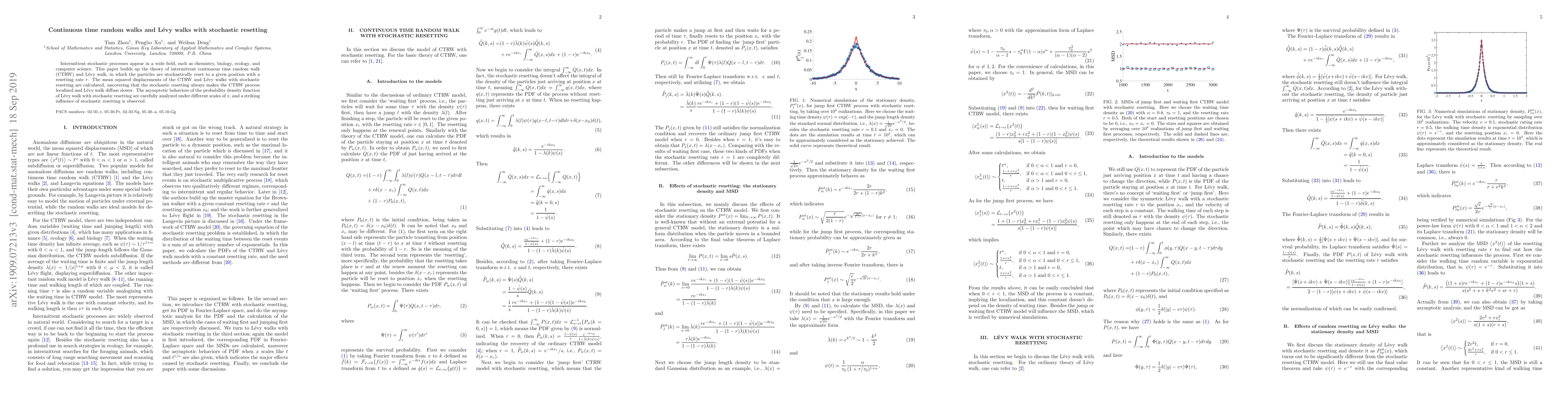 This paper develops the theory of intermittent continuous time random walks (CTRW) and Lévy walks with stochastic resetting, showing that resetting localizes CTRW and slows Lévy walk diffusion. It also analyzes the probability density function's asymptotic behavior under different scales, revealing significant effects of stochastic resetting.