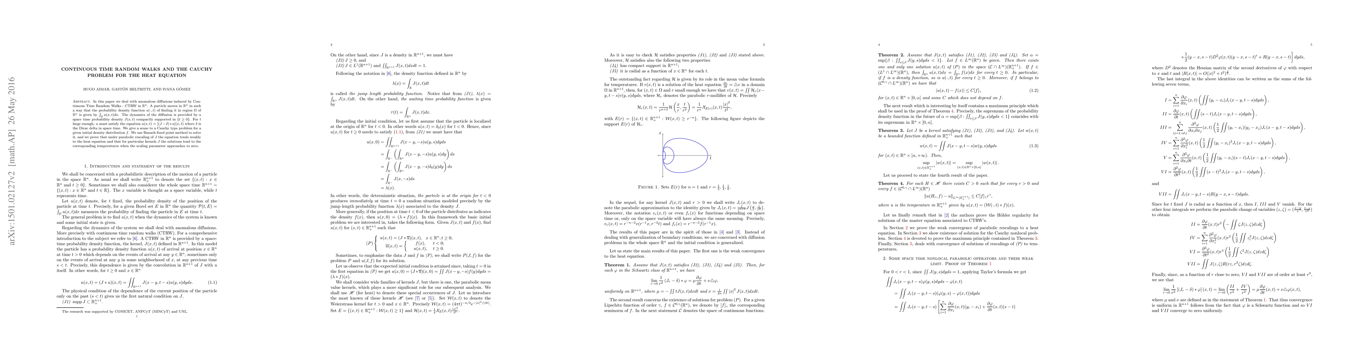 In this paper we deal with anomalous diffusions induced by Continuous Time Random Walks - CTRW in $\mathbb{R}^n$. A particle moves in $\mathbb{R}^n$ in such a way that the probability density function $u(\cdot,t)$ of finding it in region $\Omega$ of $\mathbb{R}^n$ is given by $\int_{\Omega}u(x,t) dx$. The dynamics of the diffusion is provided by a space time probability density $J(x,t)$ compactly supported in $\{t\geq 0\}$. For $t$ large enough, $u$ must satisfy the equation $u(x,t)=[(J-\delta)\ast u](x,t)$ where $\delta$ is the Dirac delta in space time. We give a sense to a Cauchy type problem for a given initial density distribution $f$. We use Banach fixed point method to solve it, and we prove that under parabolic rescaling of $J$ the equation tends weakly to the heat equation and that for particular kernels $J$ the solutions tend to the corresponding temperatures when the scaling parameter approaches to zero.