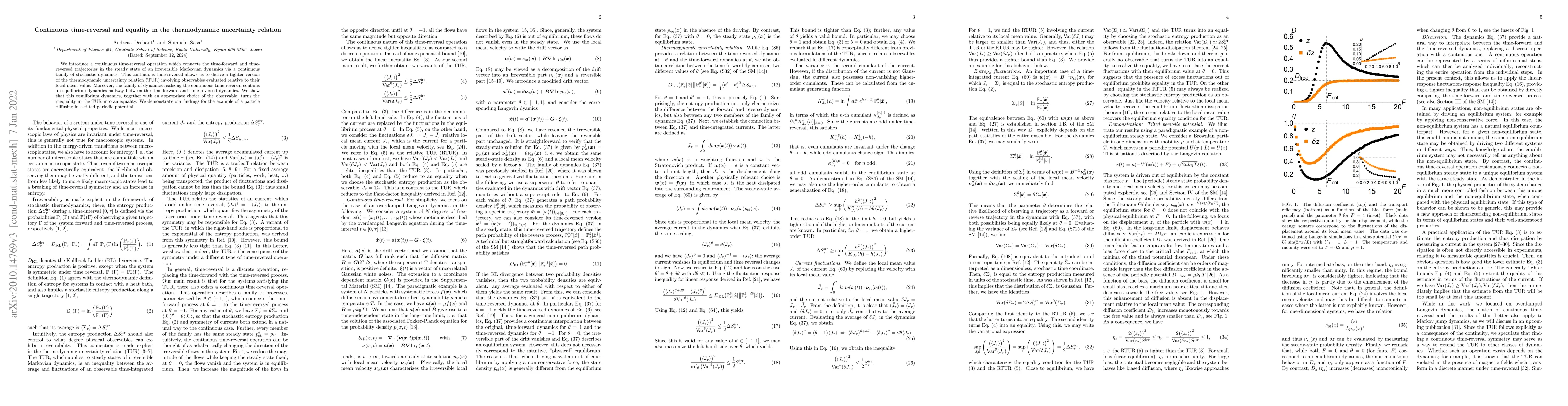 We introduce a continuous time-reversal operation which connects the time-forward and time-reversed trajectories in the steady state of an irreversible Markovian dynamics via a continuous family of stochastic dynamics. This continuous time-reversal allows us to derive a tighter version of the thermodynamic uncertainty relation (TUR) involving observables evaluated relative to their local mean value. Moreover, the family of dynamics realizing the continuous time-reversal contains an equilibrium dynamics halfway between the time-forward and time-reversed dynamics. We show that this equilibrium dynamics, together with an appropriate choice of the observable, turns the inequality in the TUR into an equality. We demonstrate our findings for the example of a particle diffusing in a tilted periodic potential.