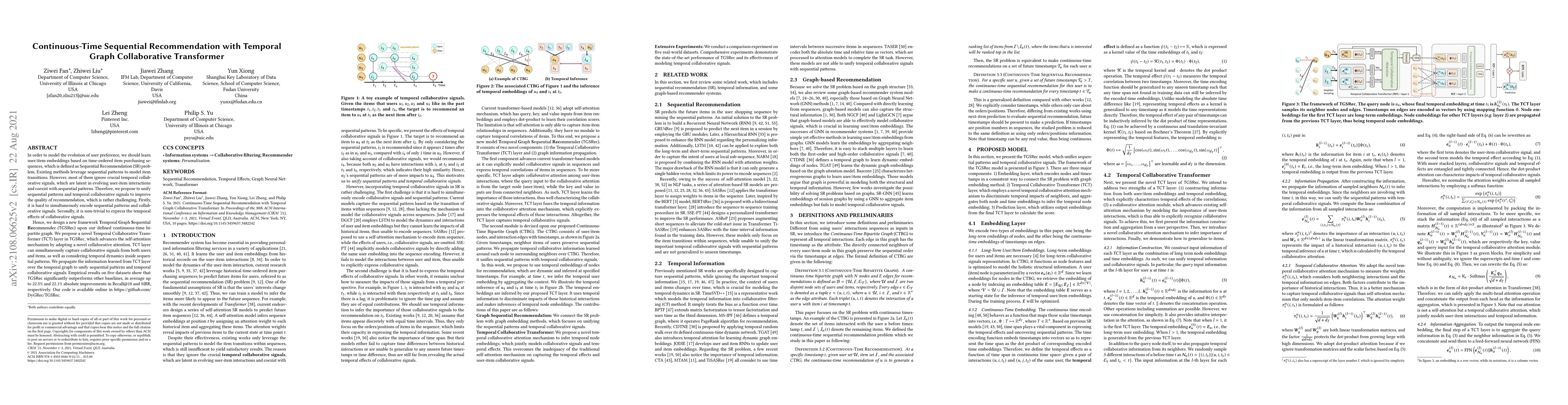 In order to model the evolution of user preference, we should learn user/item embeddings based on time-ordered item purchasing sequences, which is defined as Sequential Recommendation (SR) problem. Existing methods leverage sequential patterns to model item transitions. However, most of them ignore crucial temporal collaborative signals, which are latent in evolving user-item interactions and coexist with sequential patterns. Therefore, we propose to unify sequential patterns and temporal collaborative signals to improve the quality of recommendation, which is rather challenging. Firstly, it is hard to simultaneously encode sequential patterns and collaborative signals. Secondly, it is non-trivial to express the temporal effects of collaborative signals. Hence, we design a new framework Temporal Graph Sequential Recommender (TGSRec) upon our defined continuous-time bi-partite graph. We propose a novel Temporal Collaborative Trans-former (TCT) layer in TGSRec, which advances the self-attention mechanism by adopting a novel collaborative attention. TCT layer can simultaneously capture collaborative signals from both users and items, as well as considering temporal dynamics inside sequential patterns. We propagate the information learned fromTCTlayerover the temporal graph to unify sequential patterns and temporal collaborative signals. Empirical results on five datasets show that TGSRec significantly outperforms other baselines, in average up to 22.5% and 22.1%absolute improvements in Recall@10and MRR, respectively.