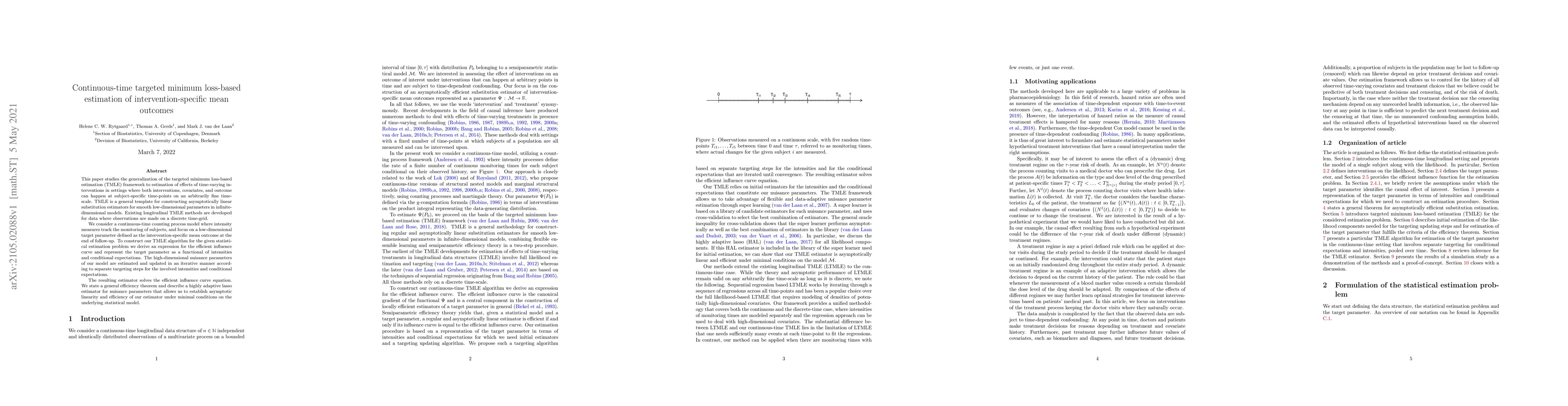 This paper extends the targeted minimum loss-based estimation (TMLE) framework to estimate the effects of time-varying interventions in continuous-time settings. The proposed TMLE algorithm constructs an asymptotically linear estimator for intervention-specific mean outcomes, utilizing an efficient influence curve and iterative updates for high-dimensional nuisance parameters.