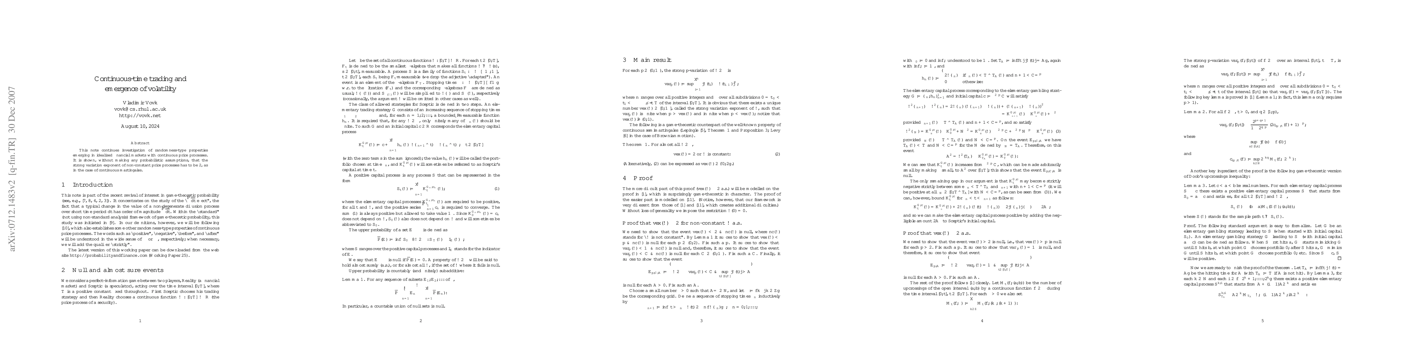Summary: This paper investigates the randomness properties in idealized continuous-time financial markets, demonstrating that non-constant price processes exhibit a strong variation exponent of 2, akin to continuous martingales, without relying on probabilistic assumptions.