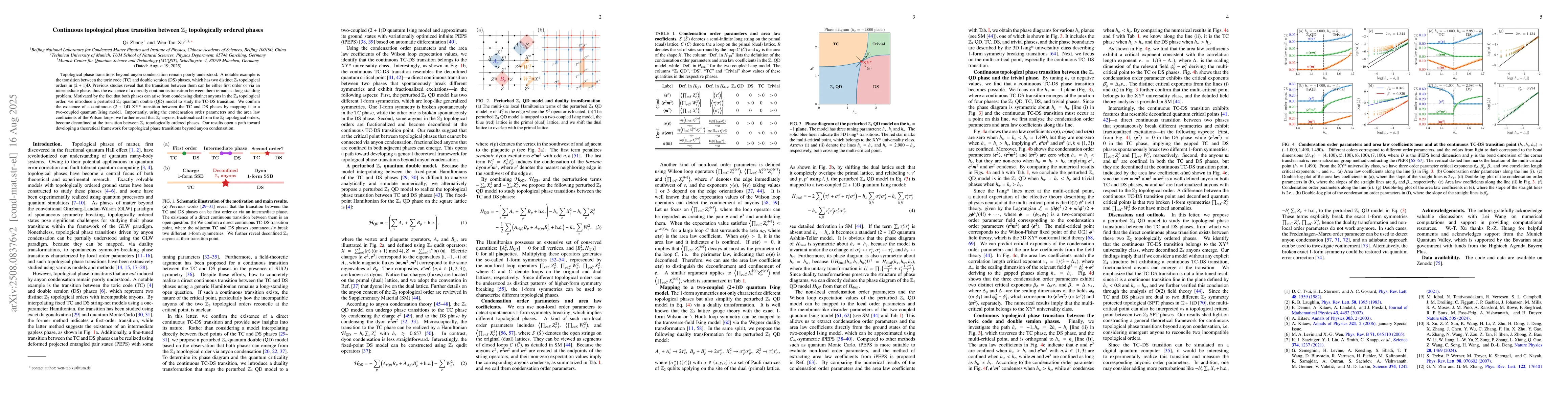 Topological phase transitions beyond anyon condensation remain poorly understood. A notable example is the transition between the toric code (TC) and double semion (DS) phases, which has two distinct $\mathbb{Z}_2$ topological orders in (2 + 1)D. Previous studies reveal that the transition between them can be either first order or via an intermediate phase, thus the existence of a directly continuous transition between them remains a long-standing problem. Motivated by the fact that both phases can arise from condensing distinct anyons in the $\mathbb{Z}_4$ topological order, we introduce a perturbed $\mathbb{Z}_4$ quantum double (QD) model to study the TC-DS transition. We confirm the existence of a continuous (2 + 1)D XY* transition between the TC and DS phases by mapping it to a two-coupled quantum Ising model. Importantly, using the condensation order parameters and the area law coefficients of the Wilson loops, we further reveal that $\mathbb{Z}_4$ anyons, fractionalized from the $\mathbb{Z}_2$ topological orders, become deconfined at the transition between $\mathbb{Z}_2$ topologically ordered phases. Our results open a path toward developing a theoretical framework for topological phase transitions beyond anyon condensation.