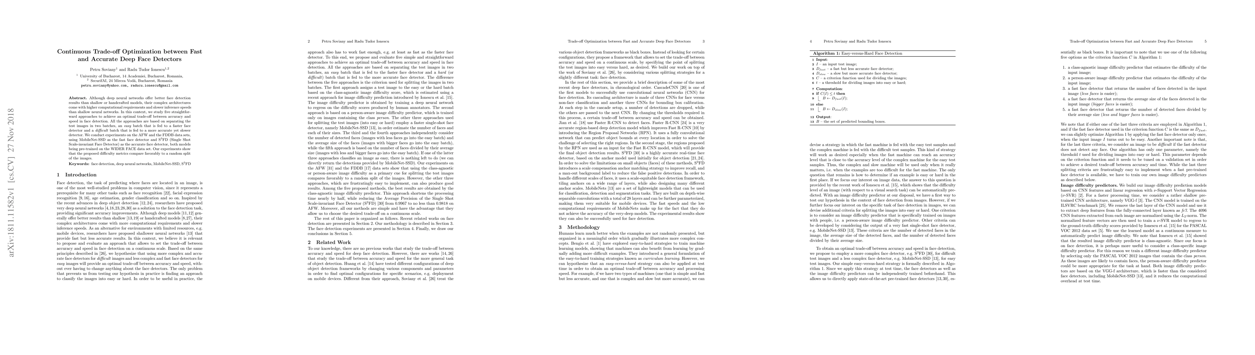This paper explores ways to balance speed and accuracy in face detection using deep neural networks. It finds that separating test images into easy and difficult batches can achieve an optimal trade-off between the two.