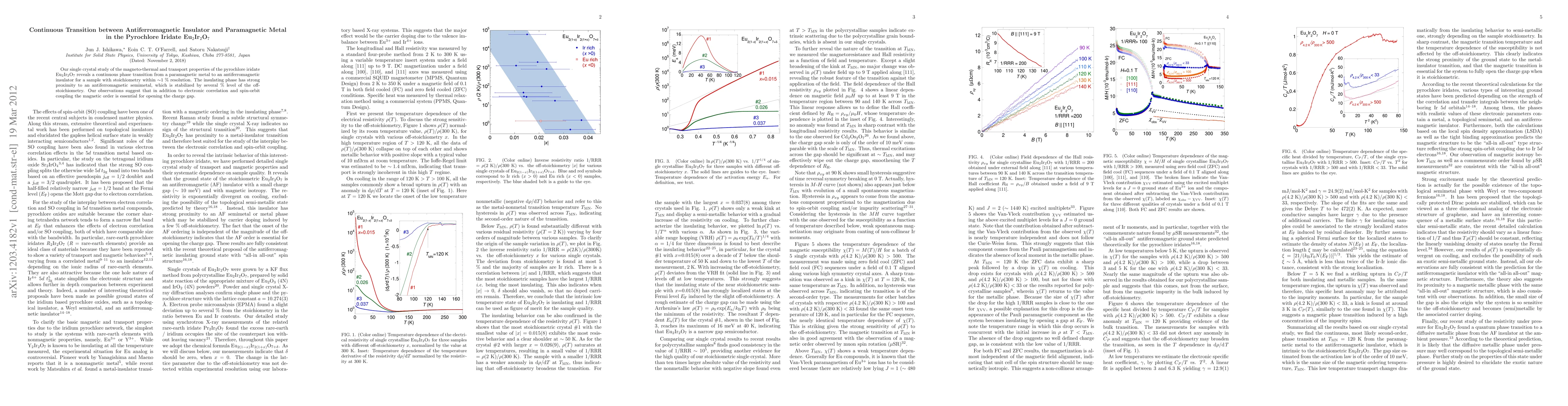 This study investigates the magneto-thermal and transport properties of Eu2Ir2O7, revealing a continuous transition from a paramagnetic metal to an antiferromagnetic insulator, highlighting the role of magnetic order in opening the charge gap. The presence of slight off-stoichiometry stabilizes an antiferromagnetic semimetal phase.