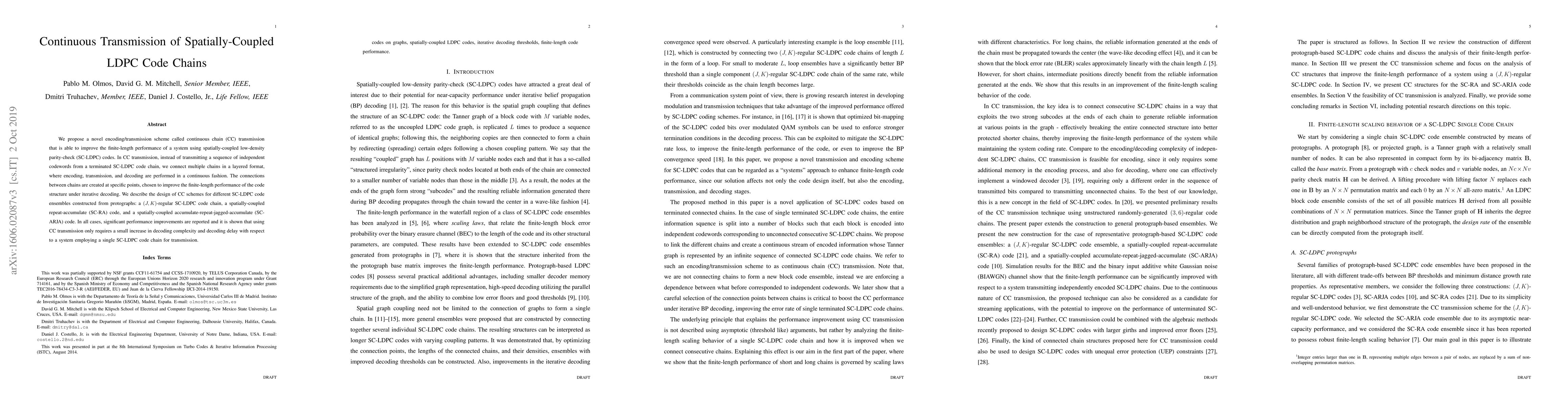This paper introduces a continuous chain (CC) transmission scheme to enhance the finite-length performance of spatially-coupled low-density parity-check (SC-LDPC) codes by connecting multiple chains in a layered format, leading to significant performance gains with minimal increase in decoding complexity and delay.