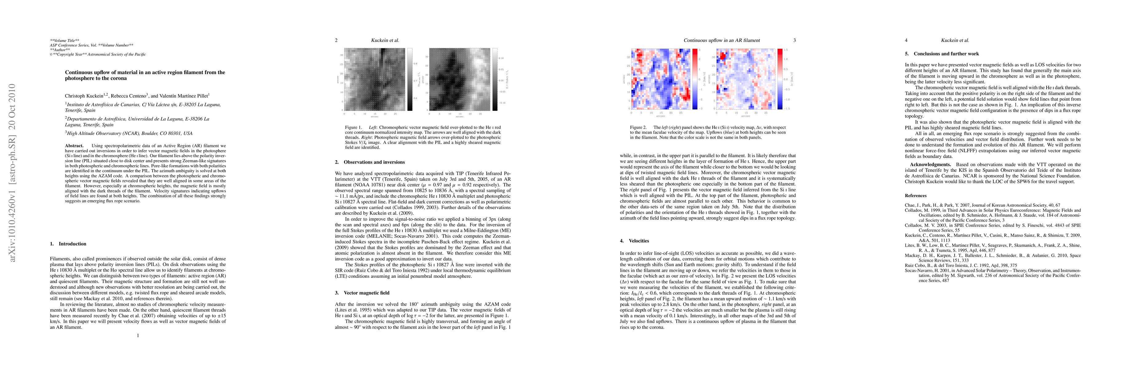 This study uses spectropolarimetric data to analyze an active region filament, revealing aligned vector magnetic fields in the photosphere and chromosphere, and identifying upflows of material, supporting an emerging flux rope scenario.