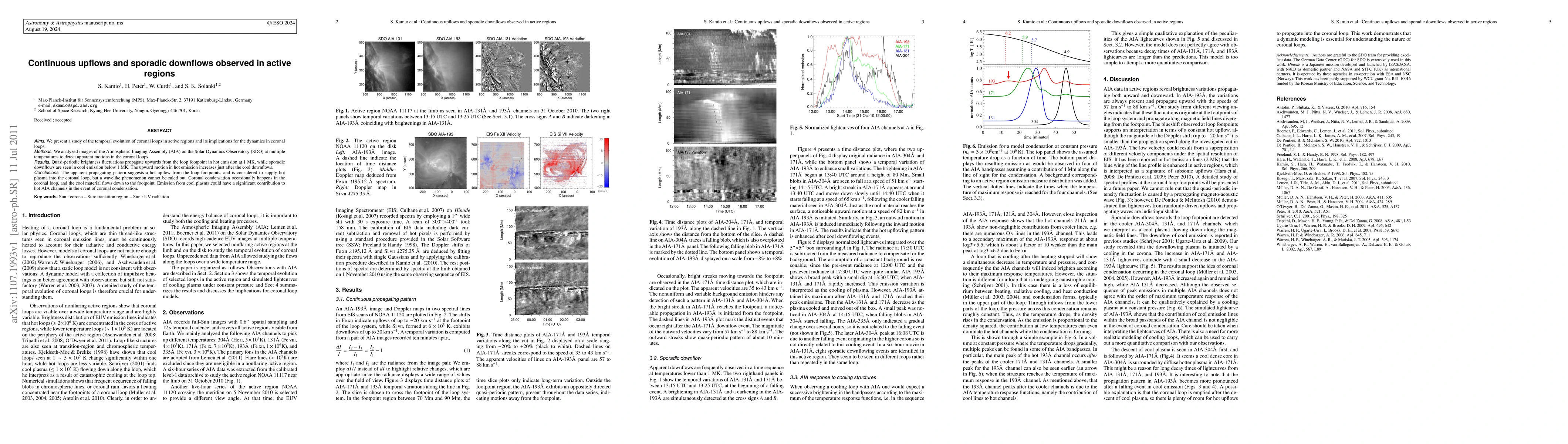 This study analyzes coronal loop dynamics in active regions using SDO/AIA data, revealing quasi-periodic upflows in hot plasma and sporadic downflows in cooler plasma. The findings suggest a complex interplay between upflows and downflows, potentially driven by a wavelike phenomenon or plasma supply mechanisms.