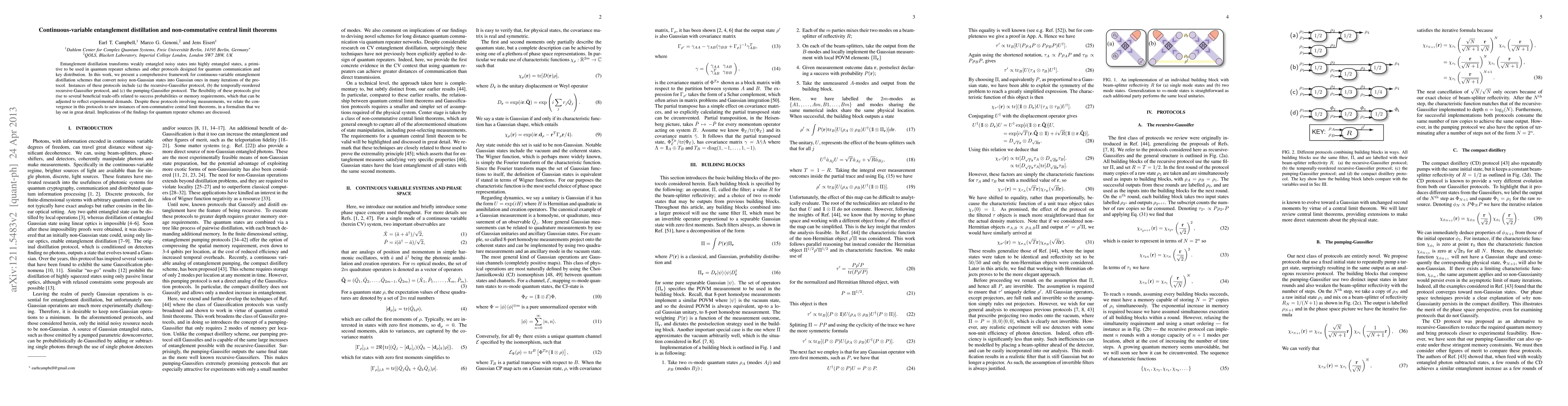 The paper introduces a detailed formalism for continuous-variable entanglement distillation, linking the convergence of distillation protocols to non-commutative central limit theorems.