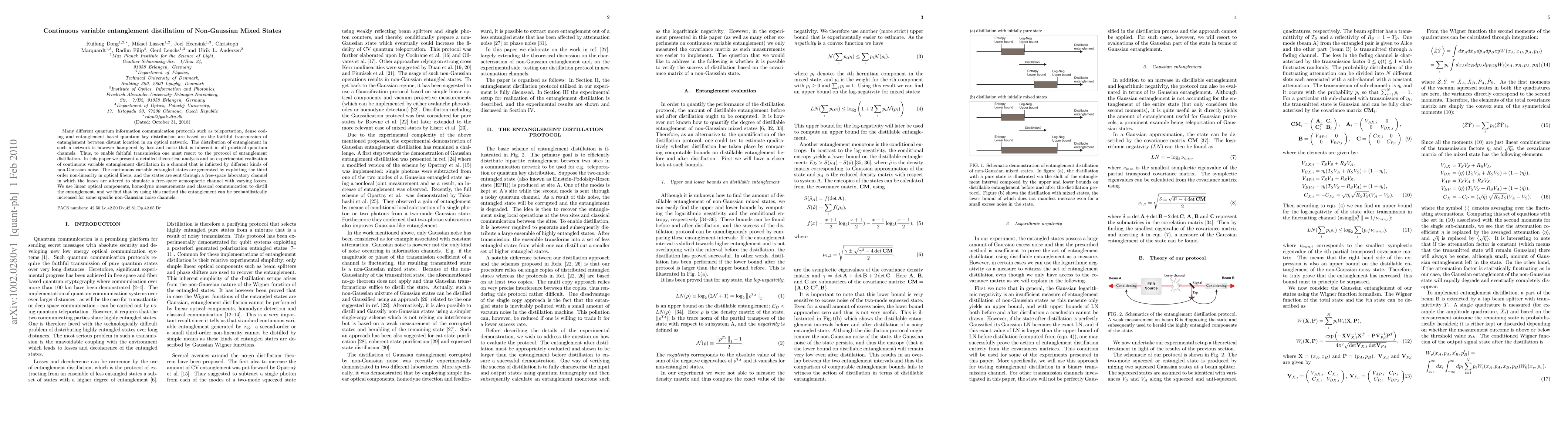 This paper presents a theoretical and experimental study on continuous variable entanglement distillation for non-Gaussian mixed states, demonstrating the use of third-order non-linearity in optical fibers to generate entangled states and linear optical components for distillation through a simulated noisy free-space channel. The results show that entanglement can be probabilistically enhanced under certain non-Gaussian noise conditions.