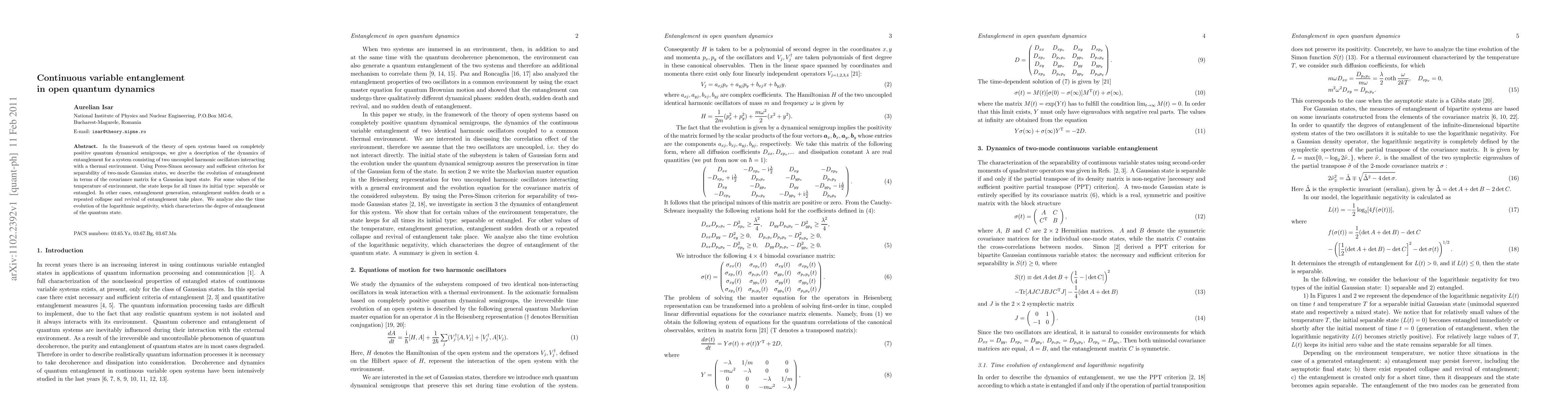 In the framework of the theory of open systems based on completely positive quantum dynamical semigroups, we give a description of the dynamics of entanglement for a system consisting of two uncoupled harmonic oscillators interacting with a thermal environment. Using Peres-Simon necessary and sufficient criterion for separability of two-mode Gaussian states, we describe the evolution of entanglement in terms of the covariance matrix for a Gaussian input state. For some values of the temperature of environment, the state keeps for all times its initial type: separable or entangled. In other cases, entanglement generation, entanglement sudden death or a repeated collapse and revival of entanglement take place. We analyze also the time evolution of the logarithmic negativity, which characterizes the degree of entanglement of the quantum state.