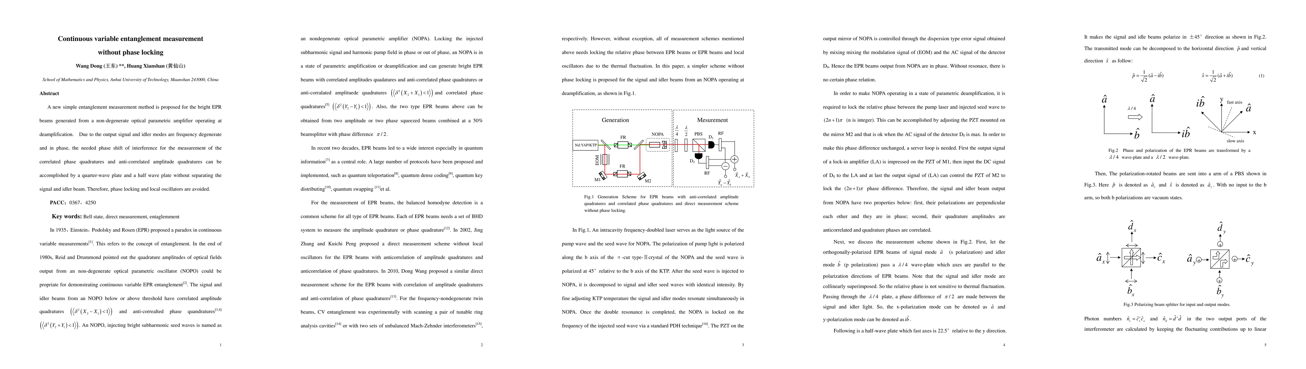 Researchers propose a new method for measuring entanglement in EPR beams without phase locking, using quarter-wave and half-wave plates to manipulate the beam's polarization.