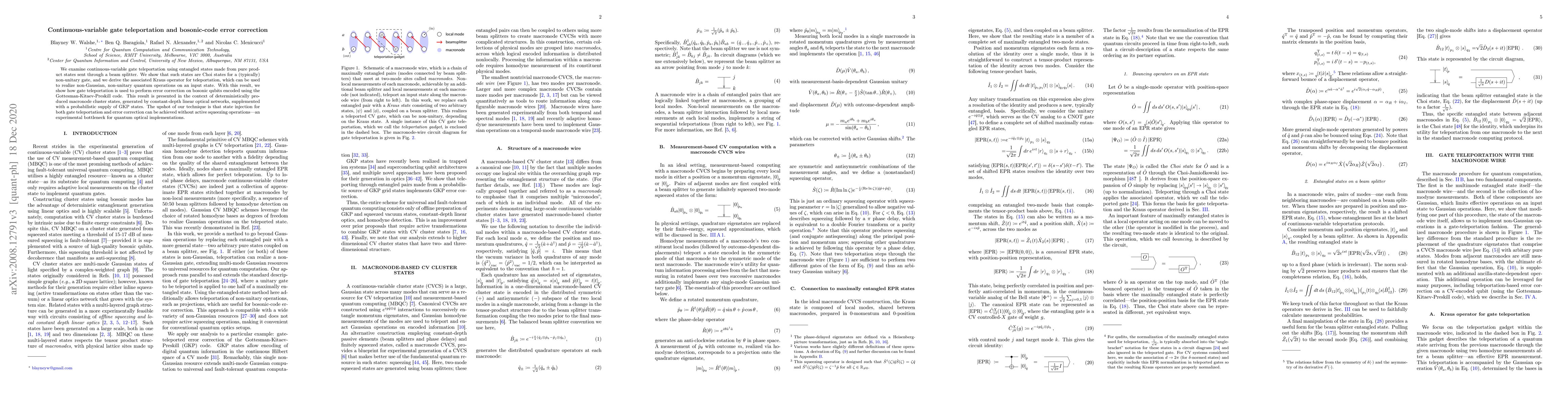This paper explores continuous-variable gate teleportation using entangled states derived from pure product states via beamsplitters, demonstrating its application in non-Gaussian quantum operations. It also presents a method for error correction on bosonic qubits using the Gottesman-Kitaev-Preskill code, achieved without the need for active squeezing, thus addressing a significant experimental challenge.