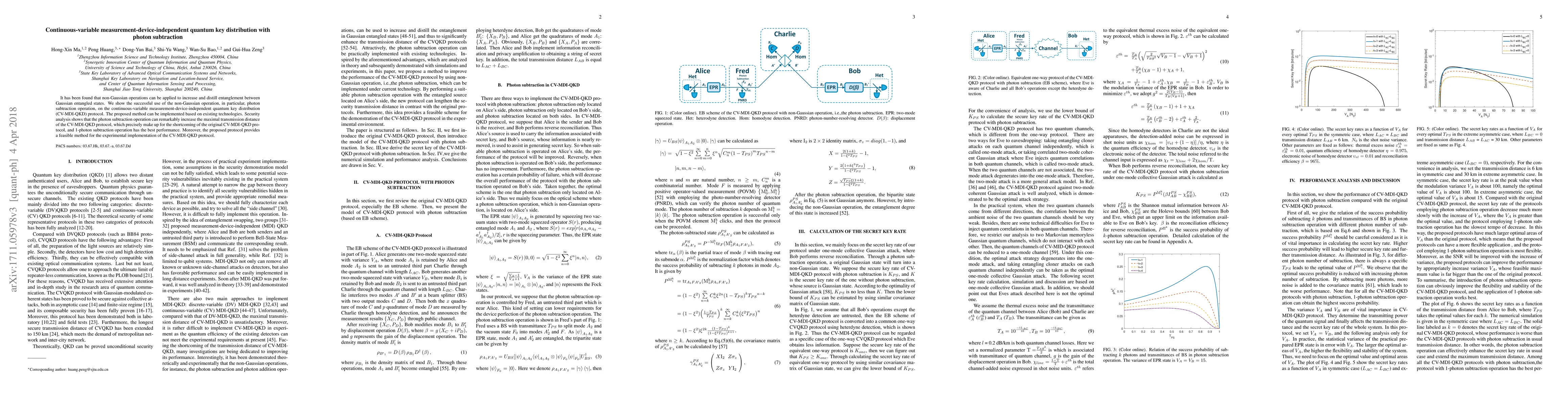 This paper proposes a method to enhance continuous-variable measurement-device-independent quantum key distribution (CV-MDI-QKD) using photon subtraction, a non-Gaussian operation, to increase entanglement and extend transmission distance. The analysis demonstrates that this approach effectively improves the protocol's security and feasibility for practical implementation.
