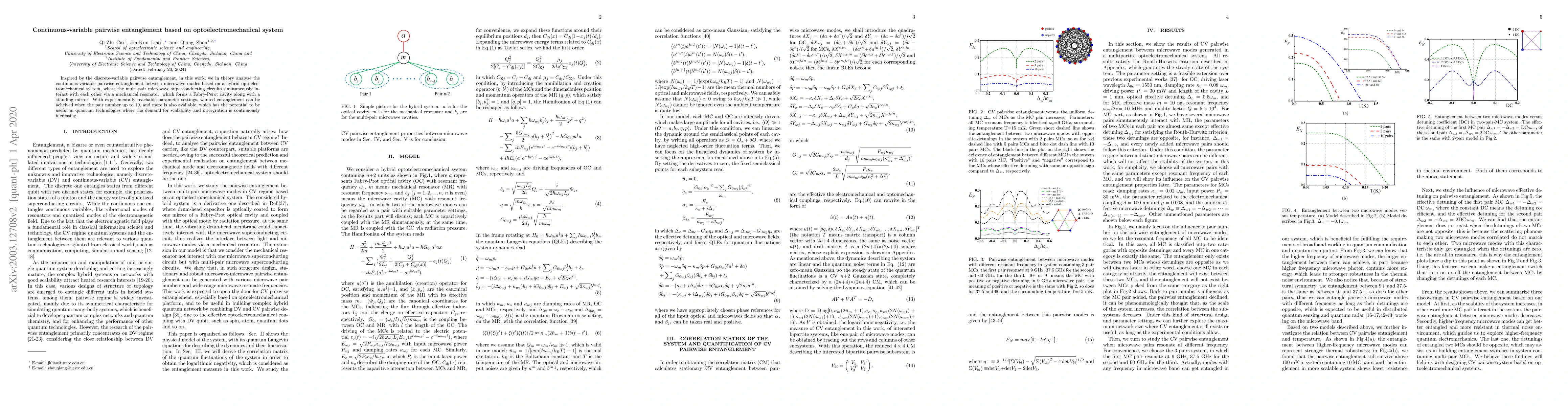 Inspired by the discrete-variable pairwise entanglement, in this work, we in theory analyze the continuous-variable pairwise entanglement between microwave modes based on a hybrid optoelectromechanical system, where the multi-pair microwave superconducting circuits simutaneously interact with each other via a mechanical resonator, which forms a Fabry-P\'erot cavity along with a standing mirror. With experimentally reachable parameter settings, wanted entanglement can be acheived when the pair number up to 10, and more is also available, which has the potential to be useful in quantum technologies where the demand for scalability and intergration is continuously increasing.