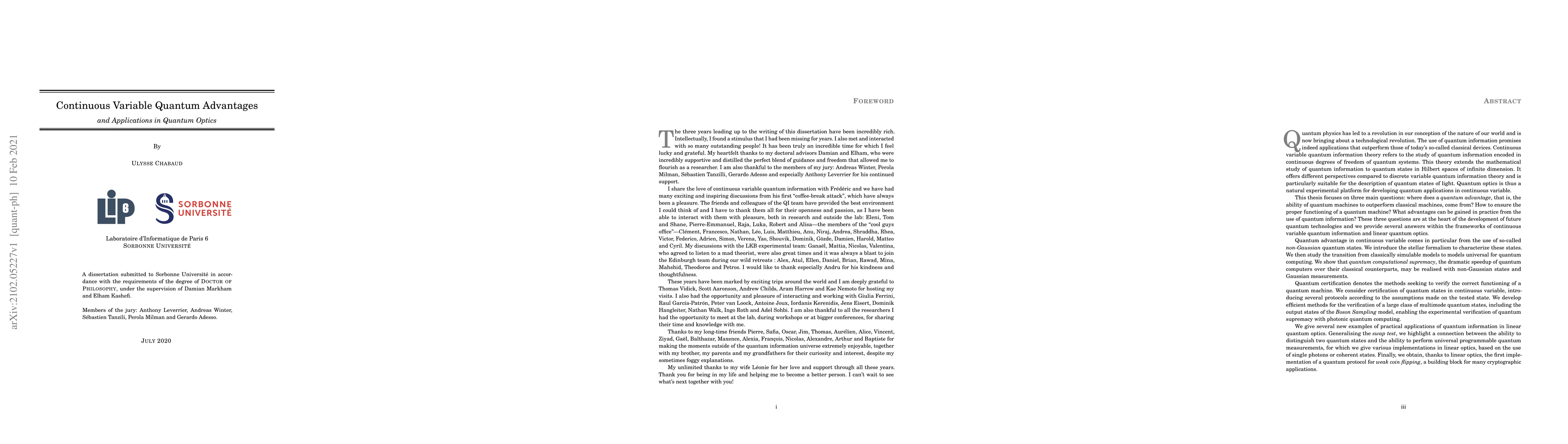 This paper explores quantum advantages in continuous variable quantum optics, demonstrating that non-Gaussian quantum states enable quantum computational supremacy. It introduces protocols for quantum state certification and presents practical applications in linear optics, including quantum protocol implementations for cryptographic uses.