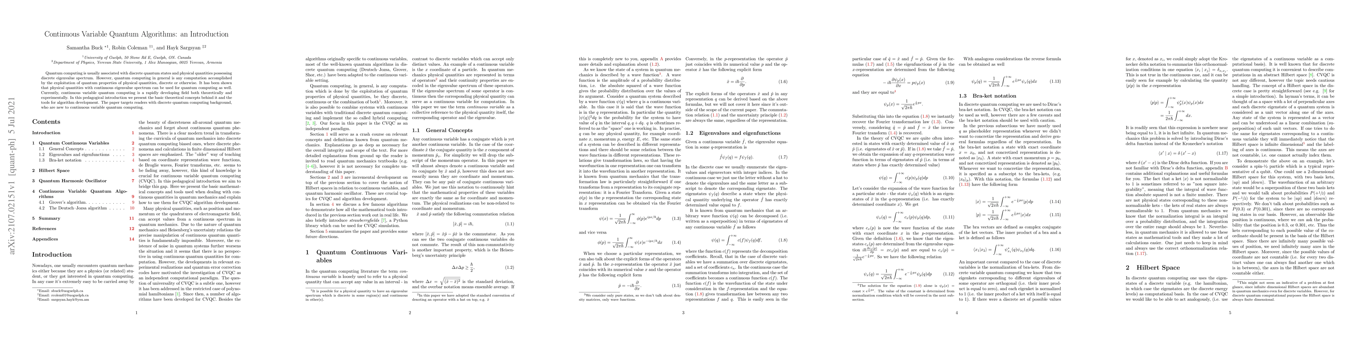This paper provides an introductory overview of continuous variable quantum computing, highlighting its theoretical foundations and algorithm development tools, aimed at readers familiar with discrete quantum computing. It emphasizes the potential of physical quantities with continuous eigenvalue spectra for quantum computation.