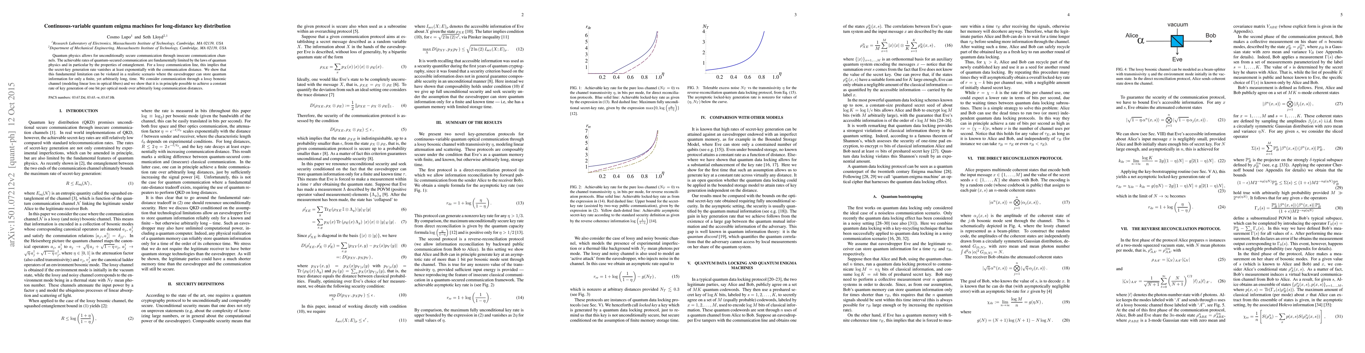 Quantum physics allows for unconditionally secure communication through insecure communication channels. The achievable rates of quantum-secured communication are fundamentally limited by the laws of quantum physics and in particular by the properties of entanglement. For a lossy communication line, this implies that the secret-key generation rate vanishes at least exponentially with the communication distance. We show that this fundamental limitation can be violated in a realistic scenario where the eavesdropper can store quantum information for only a finite, yet arbitrarily long, time. We consider communication through a lossy bononic channel (modeling linear loss in optical fibers) and we show that it is in principle possible to achieve a constant rate of key generation of one bit per optical mode over arbitrarily long communication distances.