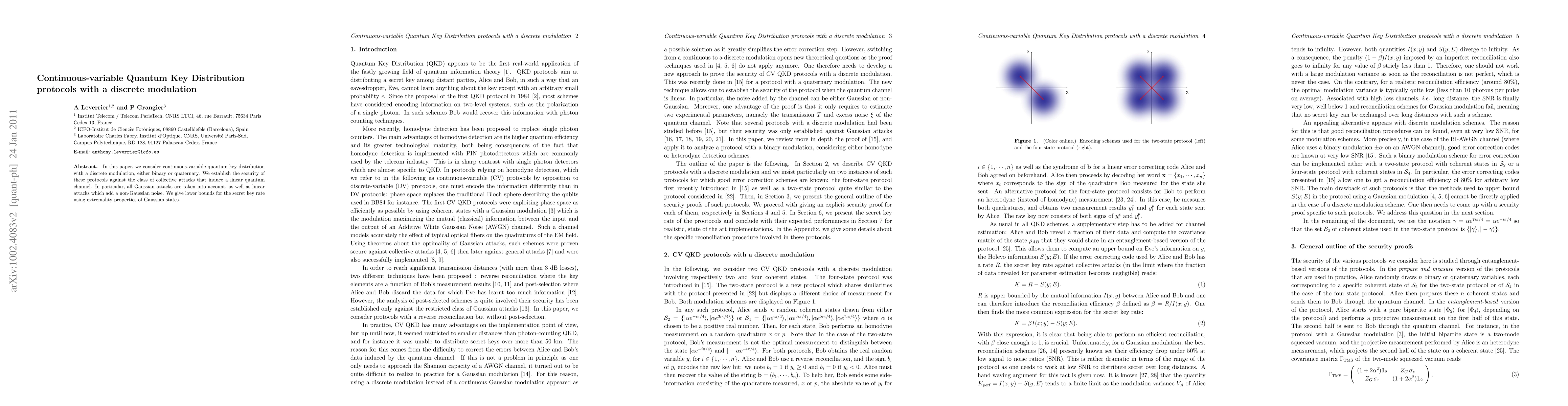 This paper explores continuous-variable quantum key distribution protocols employing binary or quaternary discrete modulation, establishing their security against collective attacks inducing linear quantum channels, including Gaussian and non-Gaussian noise, and deriving lower bounds for the secret key rate based on Gaussian state properties.